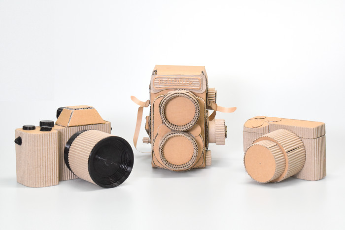 竹鼻健人くん(私立佐久長聖高等学校出身)はカメラのモックアップや段ボールのクレーン車などを制作。端にランプをつけることでオブジェとしても可愛らしい作品を作りました。