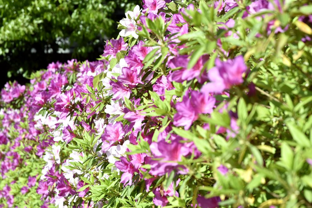 少し肌寒い日が続きますが、学科棟のある興心館近くのツツジが満開になっていました。