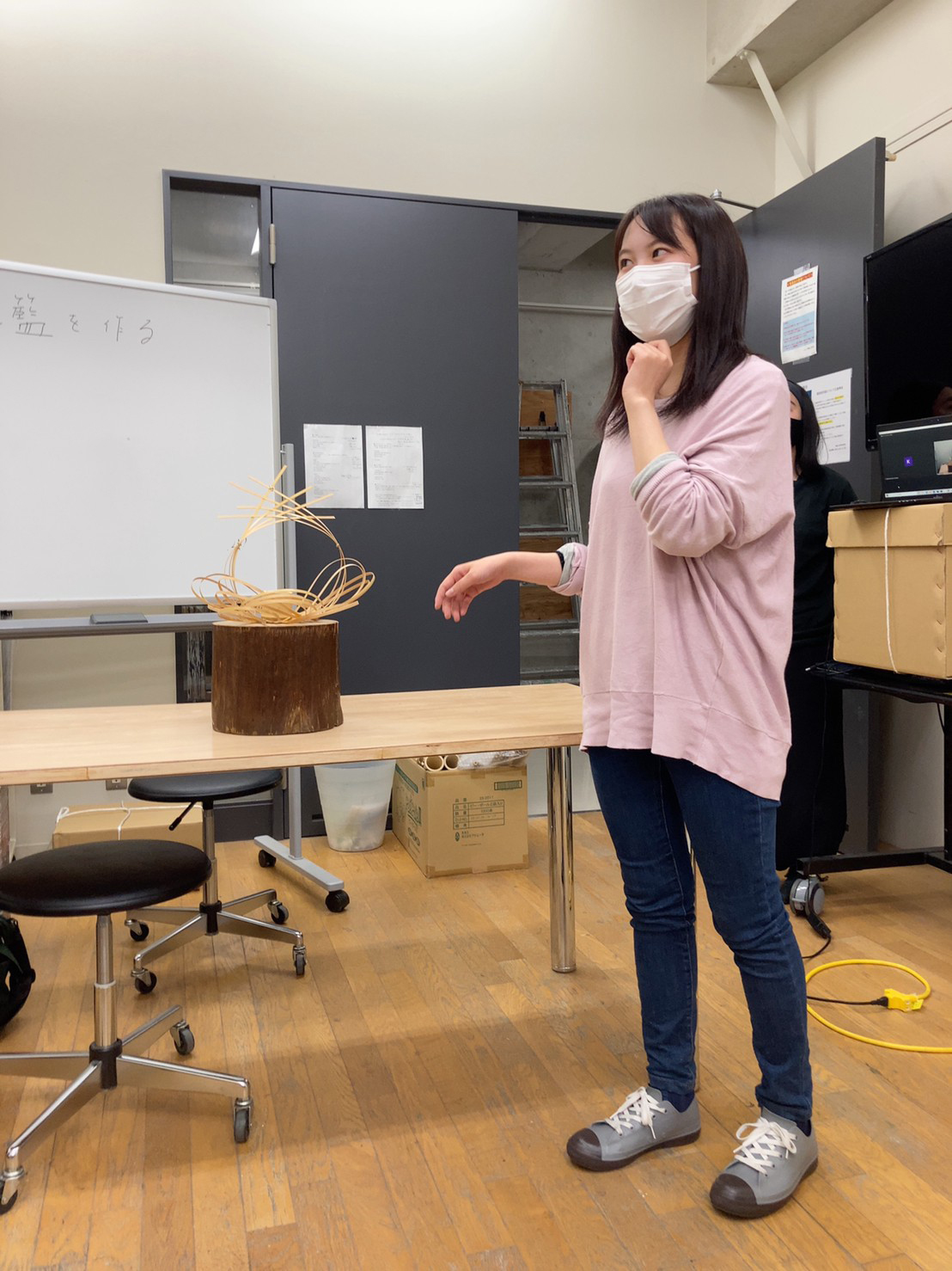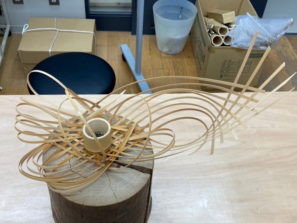 4月28日は「世界で一つだけの花籃(はなかご)を作る」と題しまして、細くした竹を使用して花を生けるための「花籃(はなかご)」を作りました。