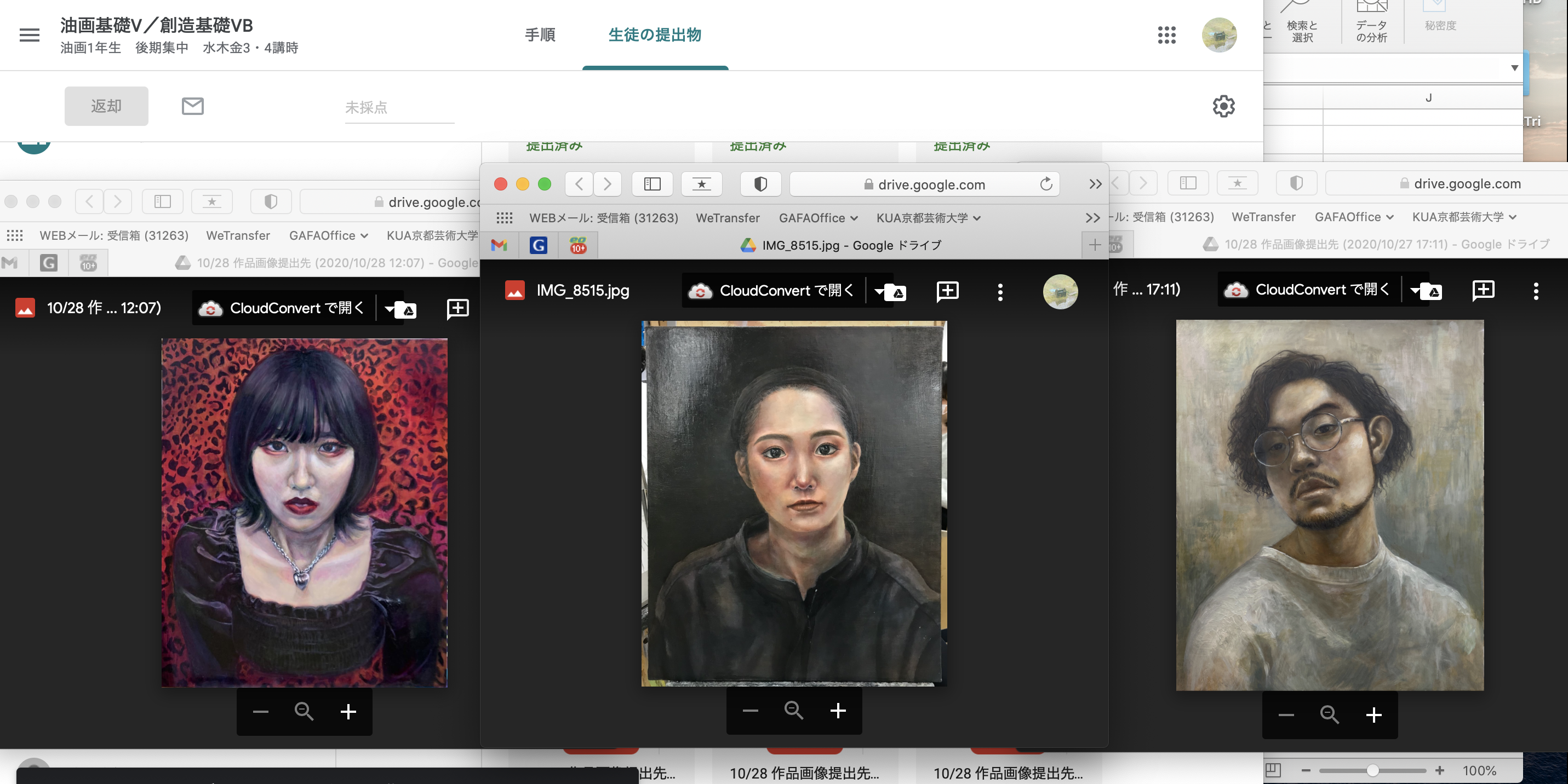 昨年度の1年次「油画基礎V」では、古典絵画技法での自画像を描きました。