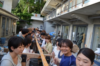 立体・陶芸含む全学年挙げての、毎年恒例・流しそうめん大会が行われました。