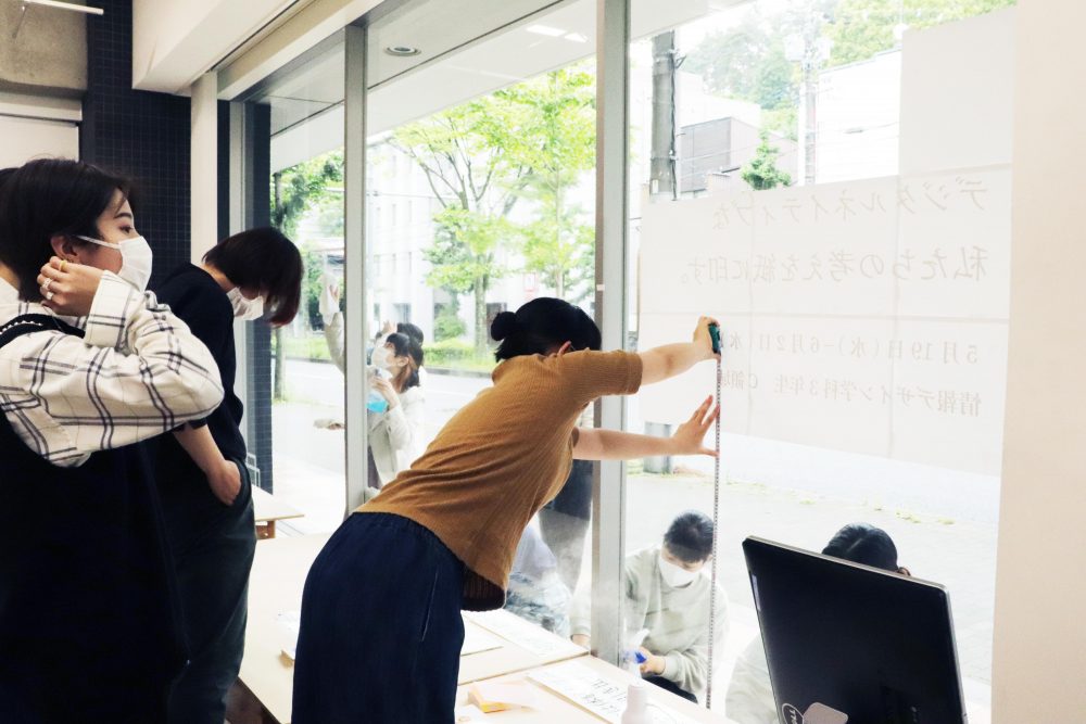 教室の窓を展示のウィンドウとしているので