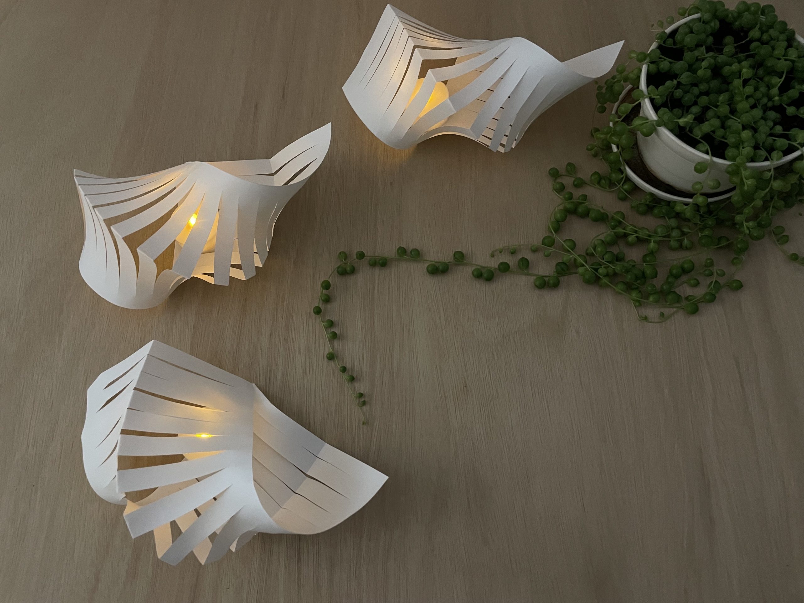 授業当日は紙を使い、わがまちを切り絵にして光と紙の造形について先生や先輩学生と一緒に理解を深めていきますが、その前に、今回のレッスン内容を見てもらい、光と紙の造形で遊んでみましょう!