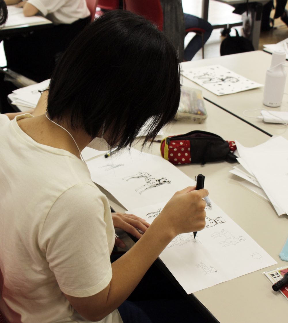 イラストレーションコースでは「ドローイング(線画)」を体験!