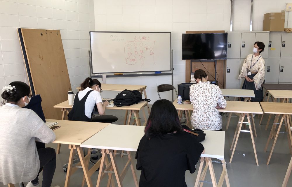 基礎美術コースの入学者も能楽を実際の舞台で見たことがある学生は少数派。ほとんどの人が初めて直に能楽という芸能に触れることになります。