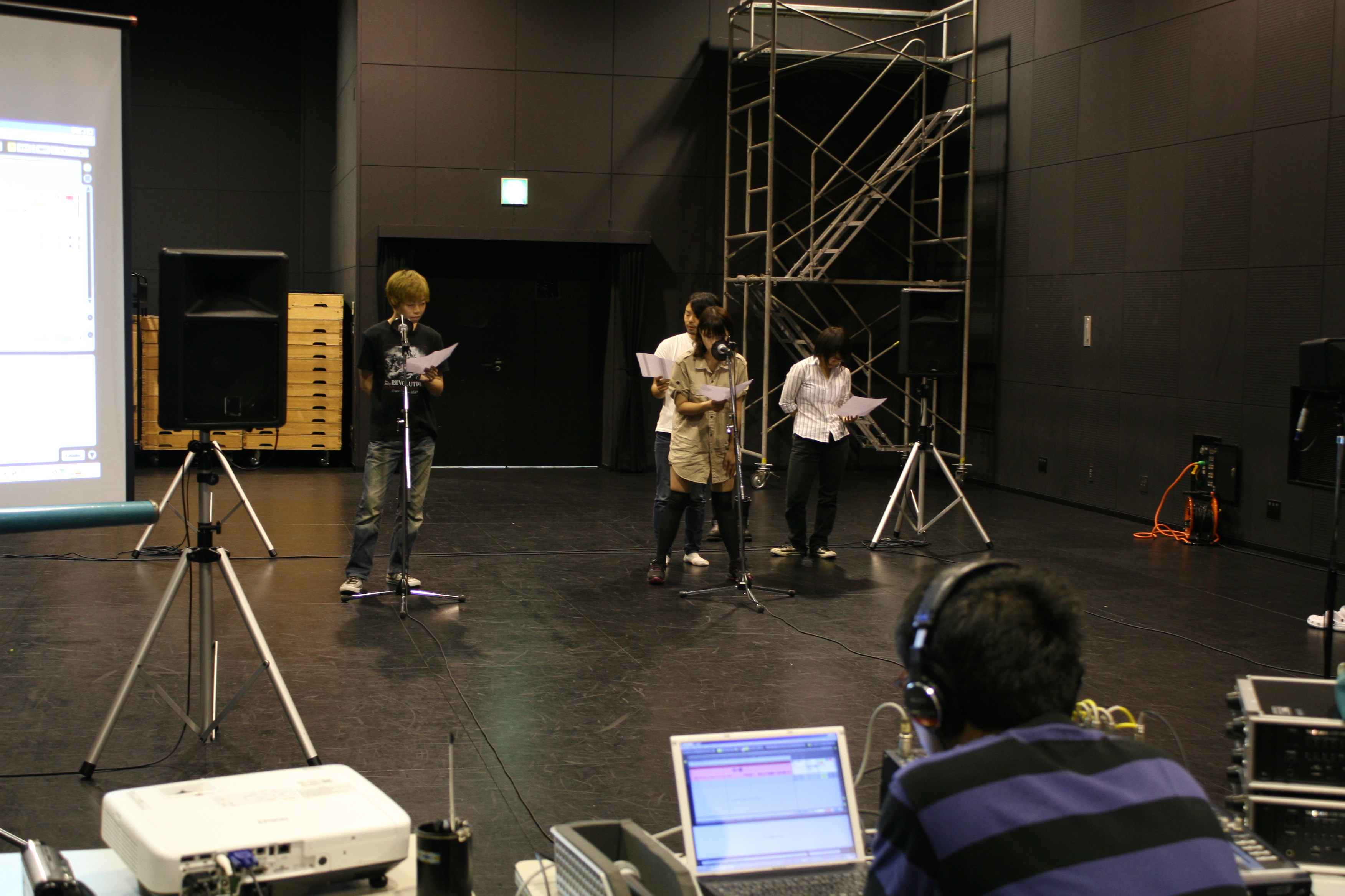 週の後半では脚本を読んで録音し、オーディオドラマを作る授業をしました。