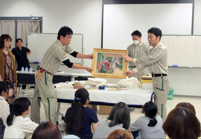 「プロフェッショナル研究」という授業をご紹介!通称「プロに学ぶ」と呼ばれているこの授業は、美術関係のプロフェッショナルをゲストとしてお招きして、イベントの運営についてや美術作品の扱い方、展覧会の企画のつくり方など、美術にまつわる知識や技術を学ぶことができます。今回のゲストには、ヤマトグローバルロジスティクスジャパン株式会社の方々にお越しいただいて、美術作品の扱い方、梱包・展示方法を伝授してもらいました。