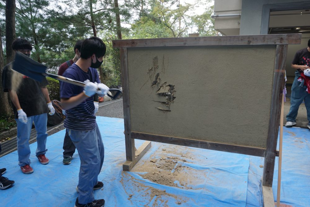 主に講義(オンライン)の授業なのですが、その中で3回実習があり、「土壁実験」「土壁解体」「土壁中塗り」と続きます。