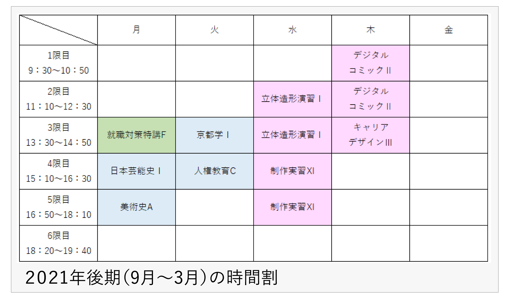 私は「イラストレーターに絶対なる!」という目標を決めていたので、その目標をどこなら叶えることができるのかという事を重要視して選びました。また先生と生徒の距離感や学校内の雰囲気、4年間学びたいと思える場所かということも含めて選びました。