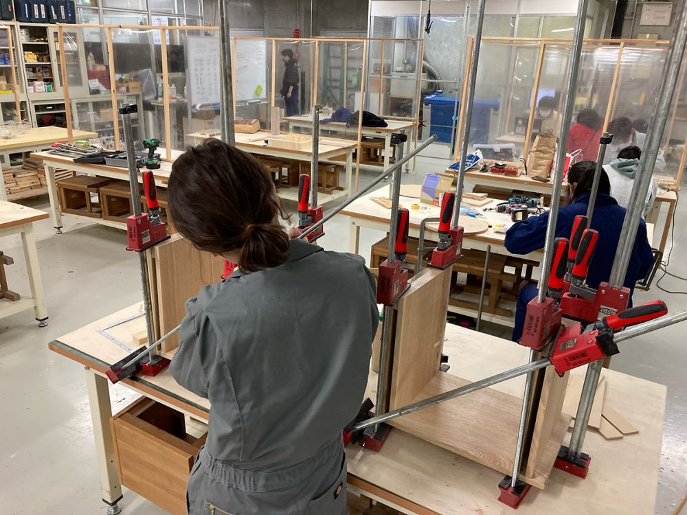 工房には、技官という制作の指導や安全管理をしてくれるスタッフが常駐しています。学生のみんなは技官と相談しながら制作をしています。
