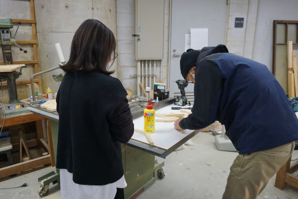 決められた角材を使って、一人ひとりアイディアスケッチからはじめて、おもいおもいのデザインの椅子を製作します。