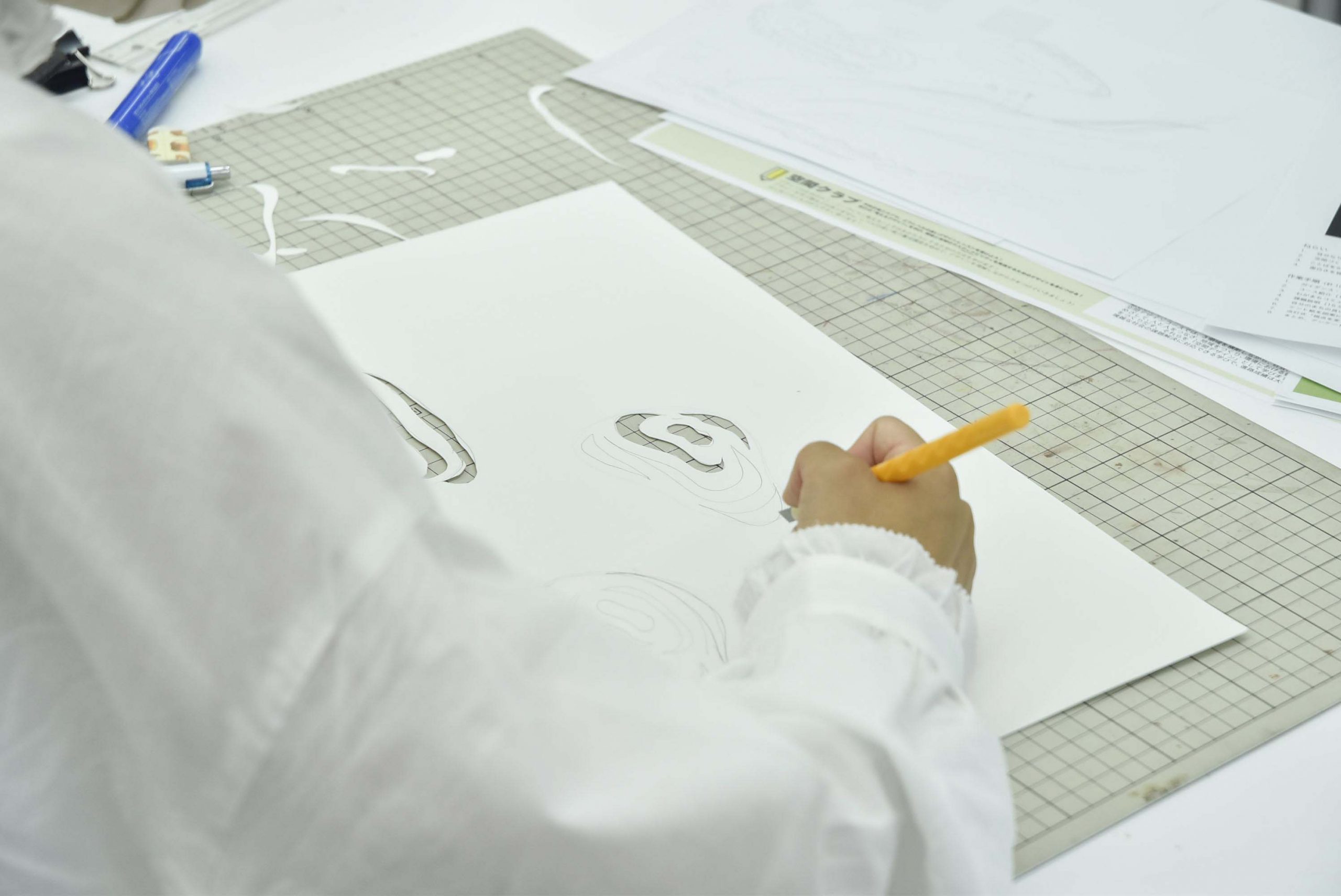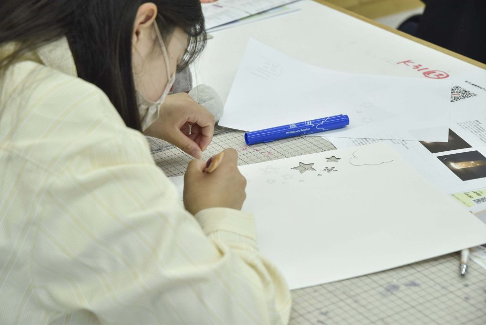 図案という平面が、あかりの空間に変化し、デザインが別の視点を生む面白さも体験してもらいました。