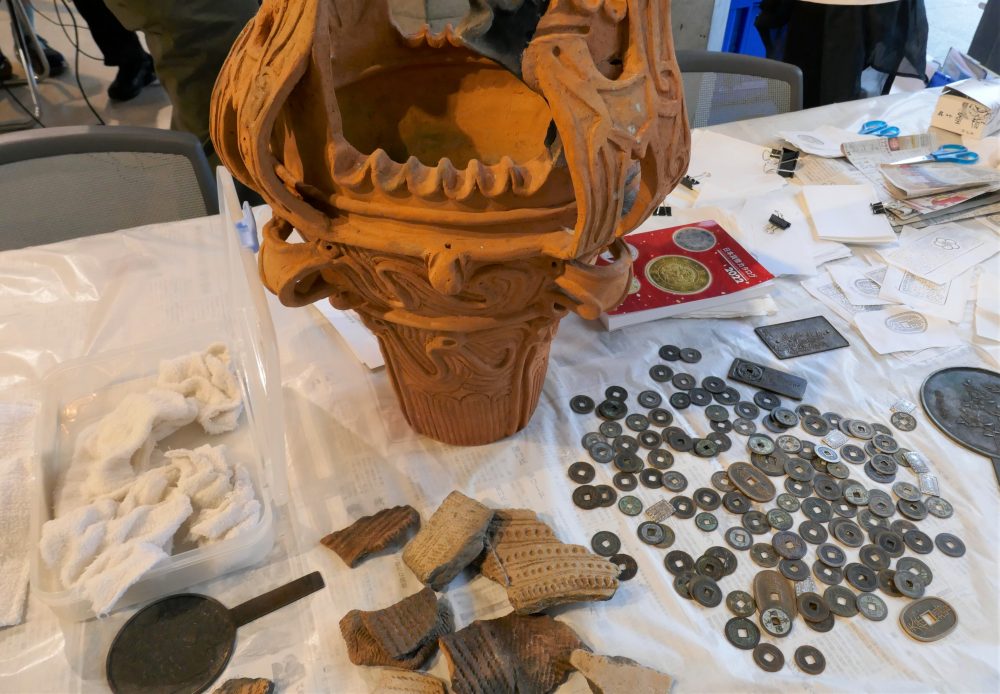 「拓本はご存知ですか?」とお聞きしても、あまりぴんとこない方が多かったようですが、「魚拓」と言うとイメージが湧きやすいようです。和紙と墨を使って、実物の古銭、鏡、土器の拓本を採っていただきました!