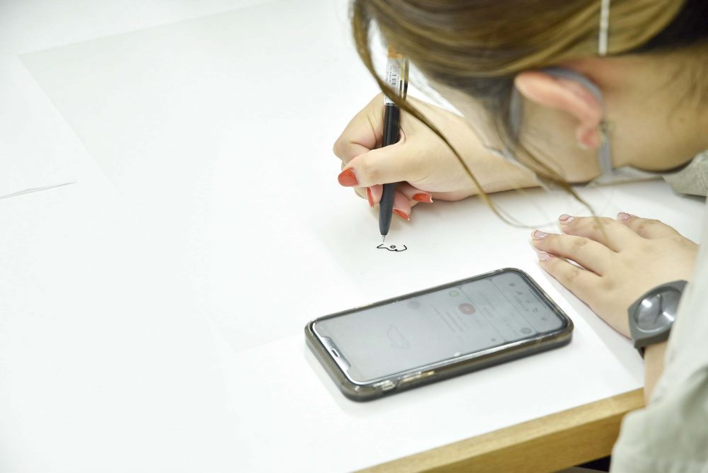 透明のフィルムにポスカなどのペンを使って原稿をつくっていきます。