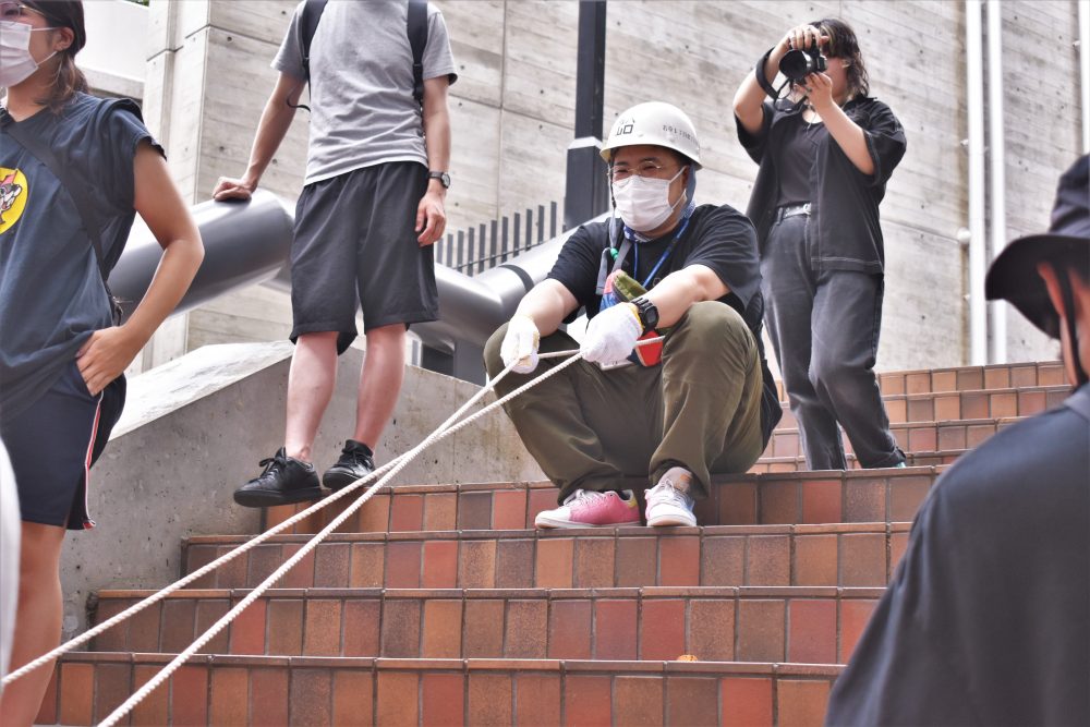休憩しつつ、次は物体をどう運ぶのか、今回の「でっけ~~~山」を設計した荒木 桃香さん(神奈川県立追浜高等学校出身)が逐一指示を出していきます。