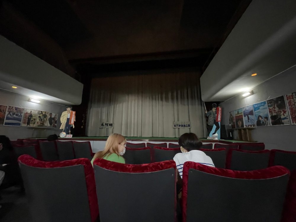 朝から夕方までずっと気が張って作業をしていたので、「ちょっと、インプットもしないと、学生も疲弊しちゃうな」と思い、「せっかくだから、映画観ようよ」と学生を誘い、映画『のさりの島』にも出てくる、天草に唯一残る映画館『本渡第一映劇』へ。