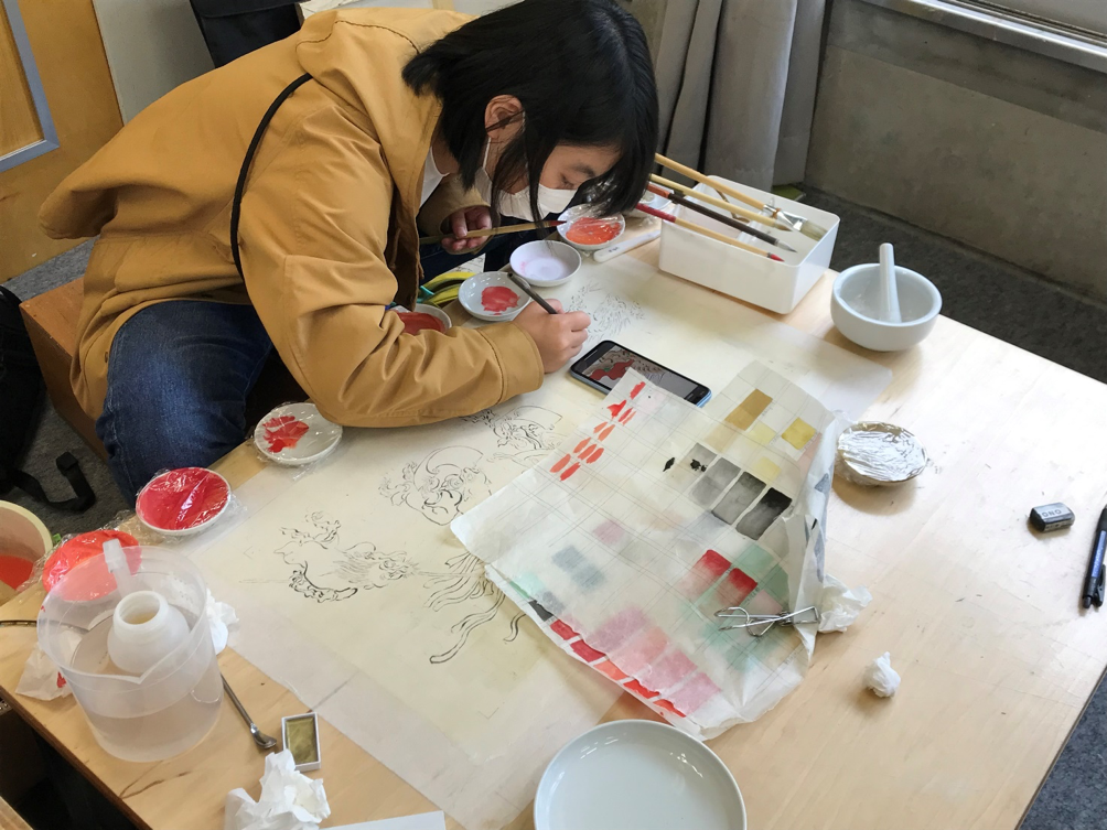 大学では、後期の授業がはじまって約1か月が経ちました。入試もはじまって、入学を控えている方も出てきたころでしょうか。授業内容も深まっていく後期、今回は、日本画コースの2つの授業に潜入した様子をお届けします。