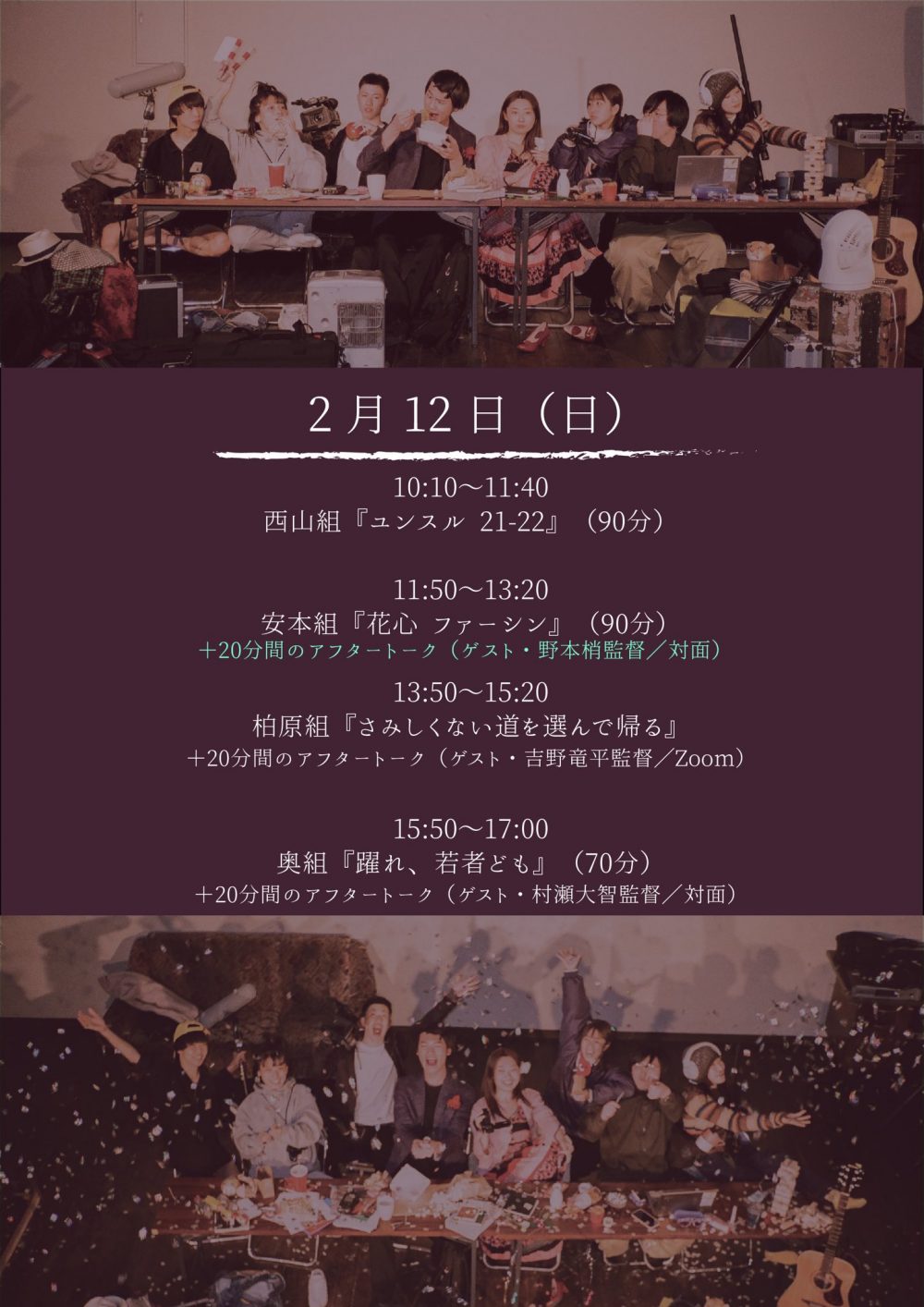 サブ会場として、瓜生山キャンパス人間館・映像ホールでは、13期生の3年生までにつくられた短編・中編映画を中心に上映が行われています!