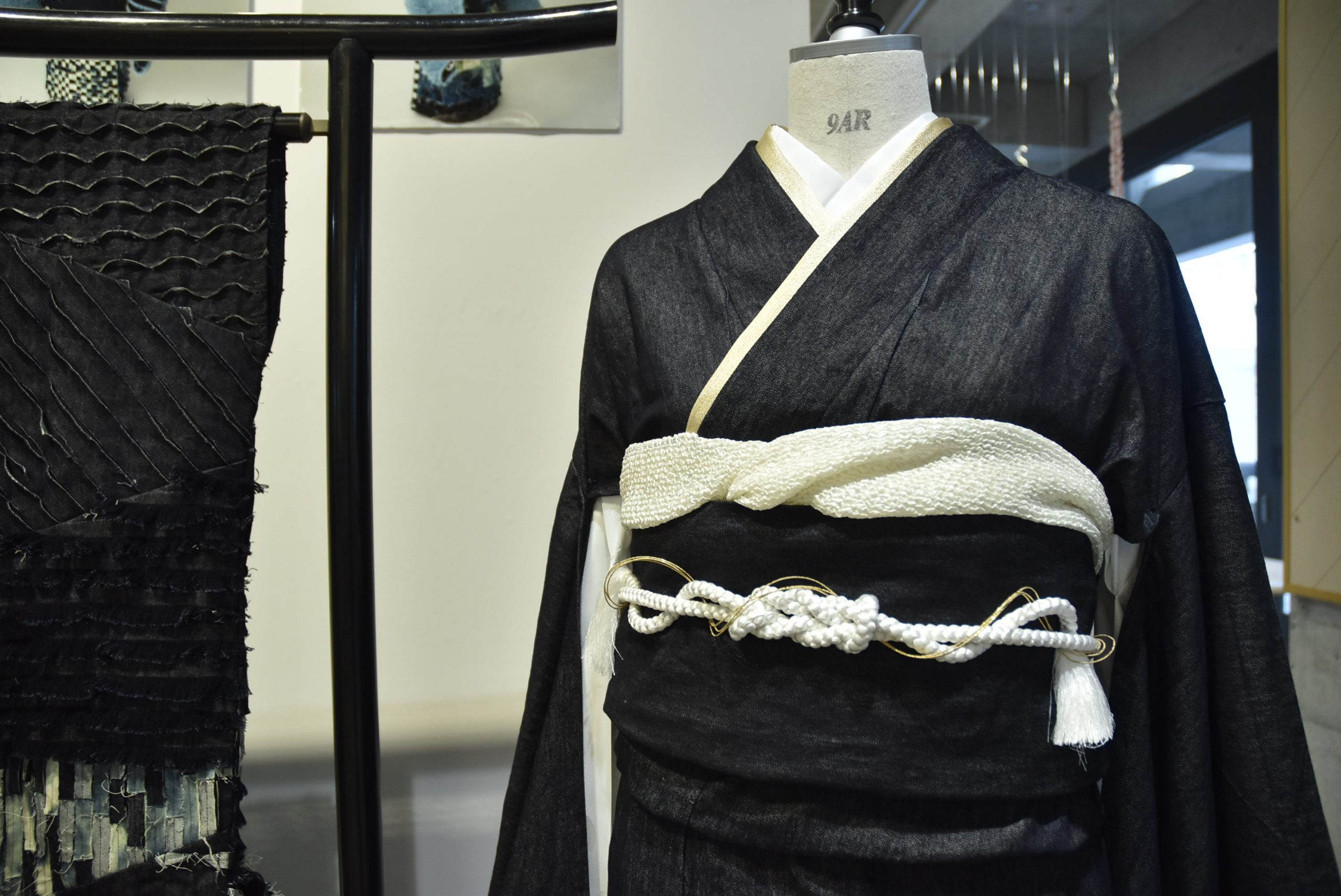 実際にヨシを自身で刈り、ヨシからできた糸をデニムで織り、彼女自身が成人式で着るための着物を制作されました。