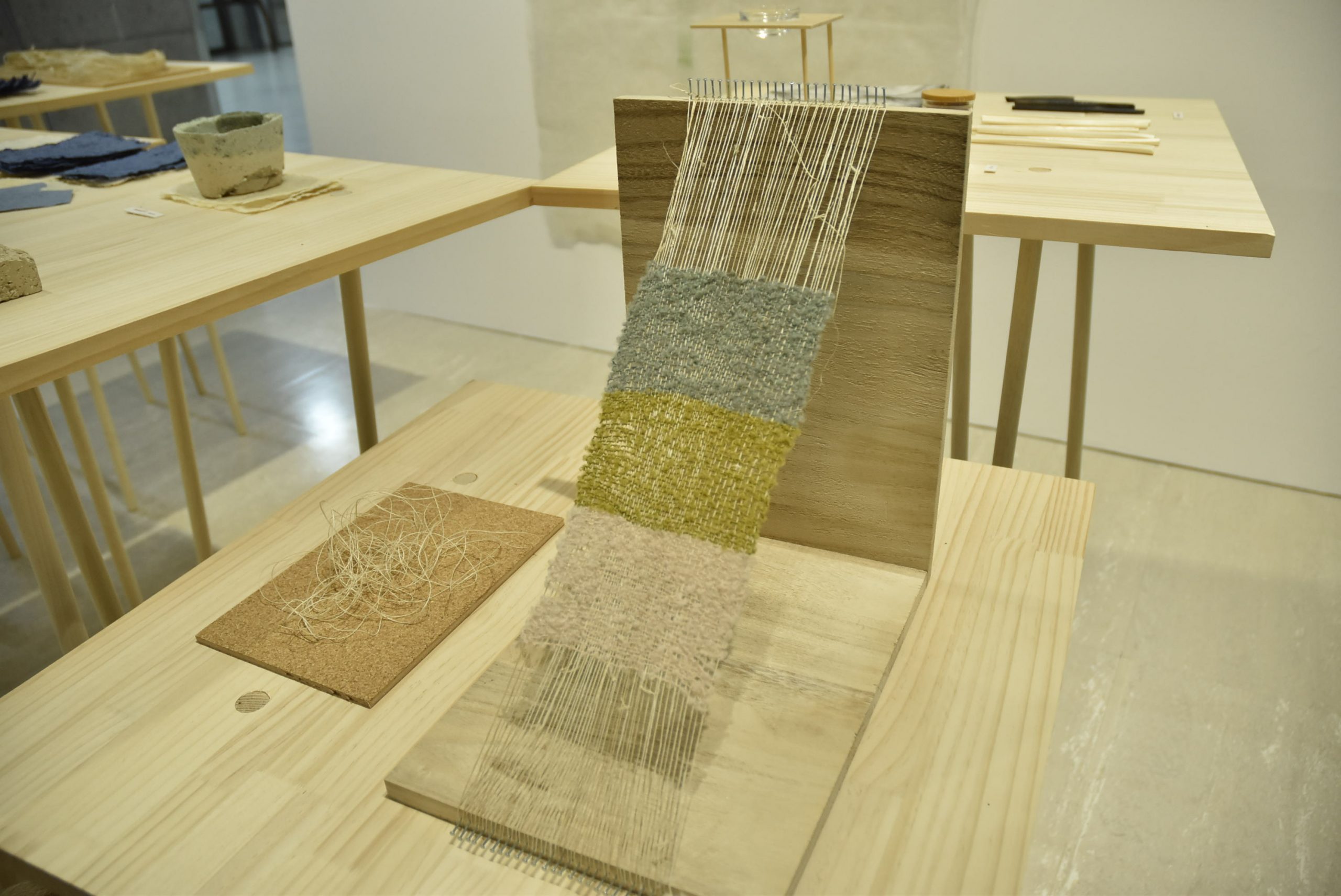 長浜市の織物である網織紬を参考に、沖島で廃棄される漁網を使った新たな織物を提案。