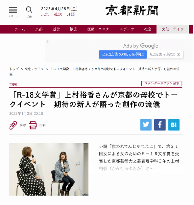 このトークイベントの様子は京都新聞にも掲載されました。