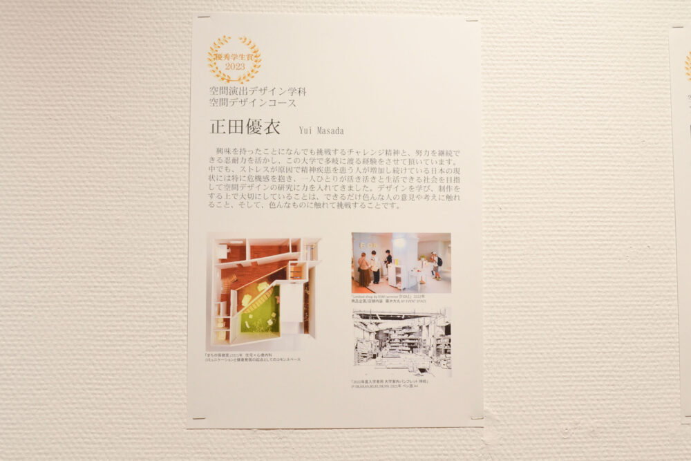 \パネルとともに、空間演出デザイン学科の優秀学生をご紹介/