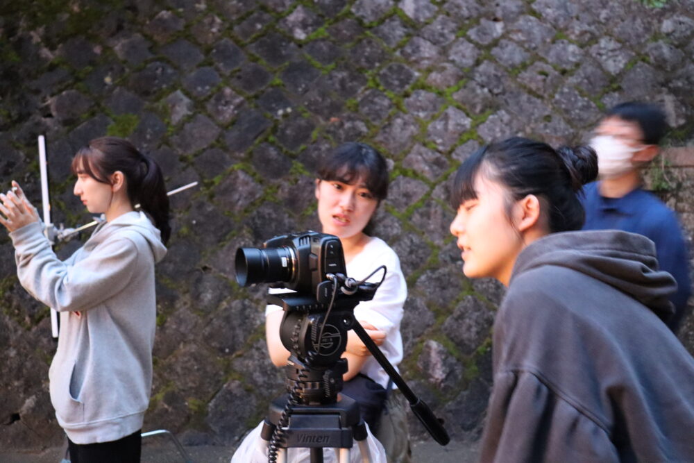 1年を通じて中編映画を作る「中編映画制作Ⅱ」という授業の中で進められているもので、この作品は、3年生約10人が製作にあたっています。