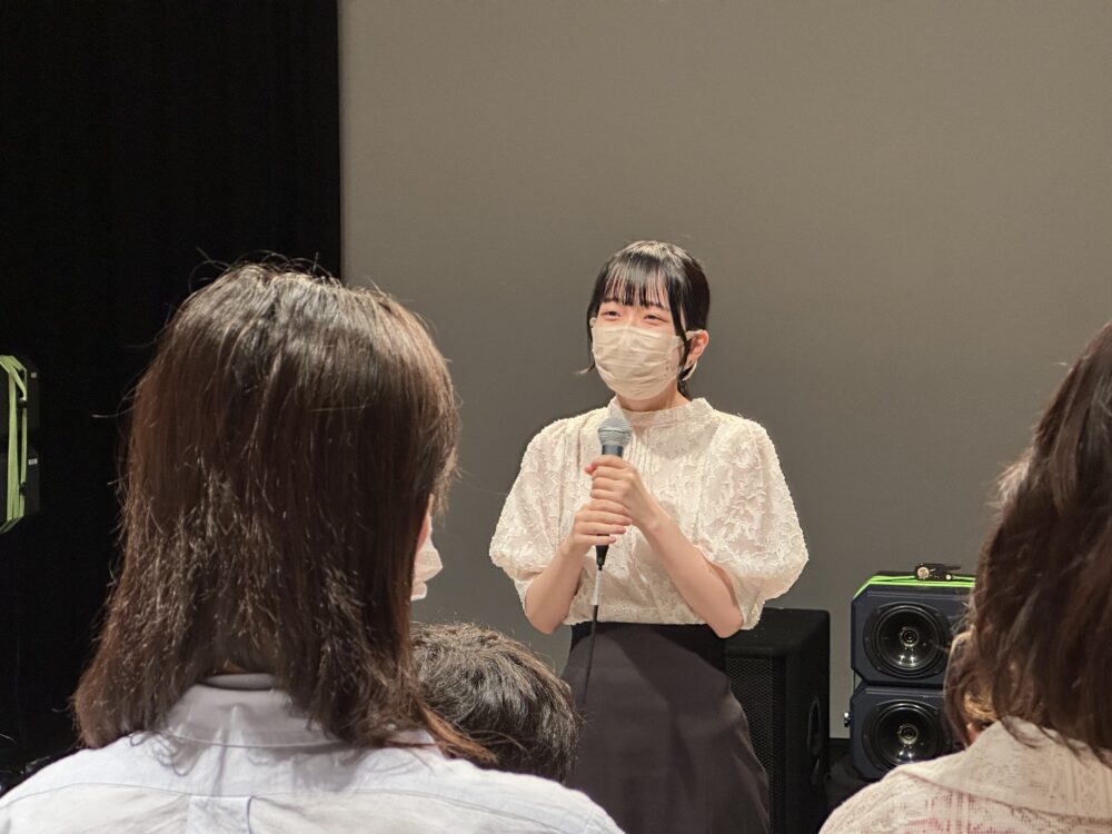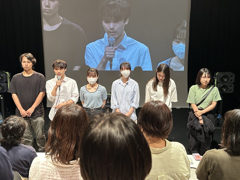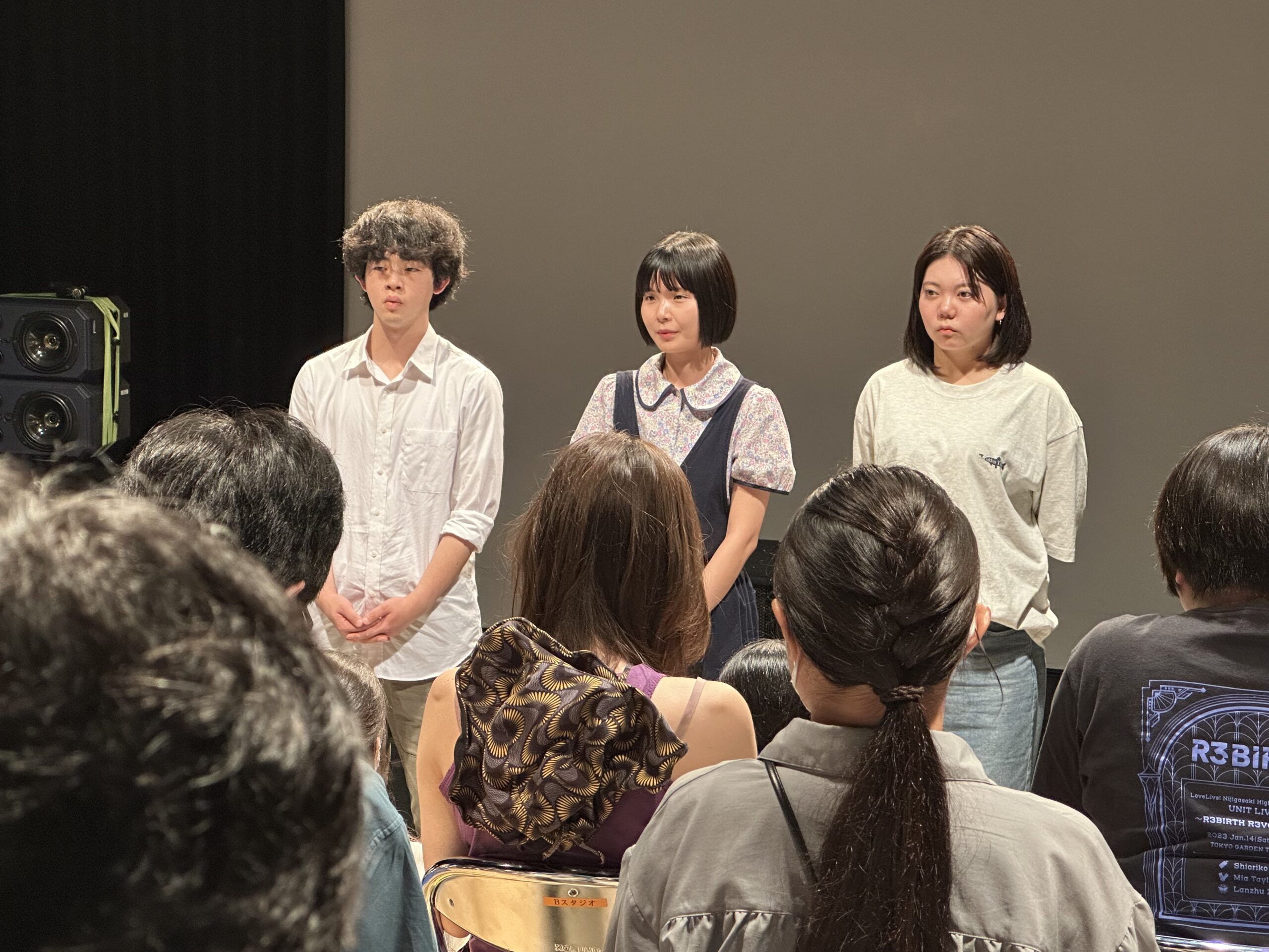 合評の司会進行は、俳優コースの芦岡泰成さんと日下皓登さんが担当し、Bスタジオからの中継は水田葵さんが明るい調子で担いました。