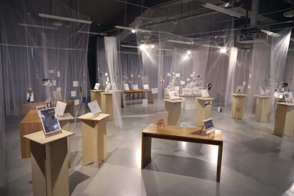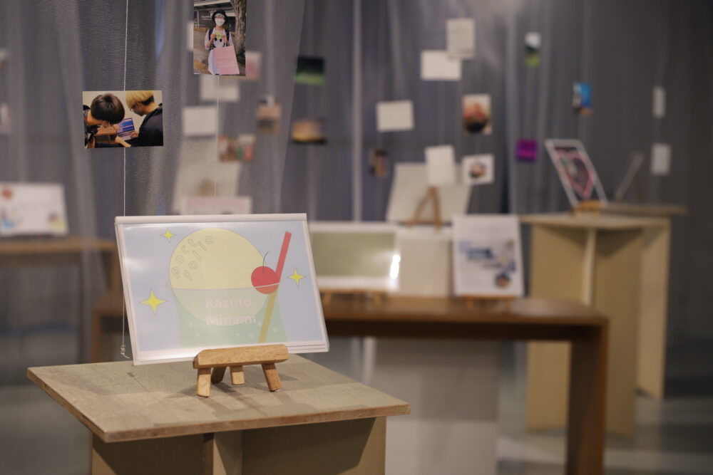 今回の学生作品展では、展覧会やイベントを自ら企画し、実際の社会でアートを活かす経験を積んだ3年生によるポートフォリオを中心に展示しました。