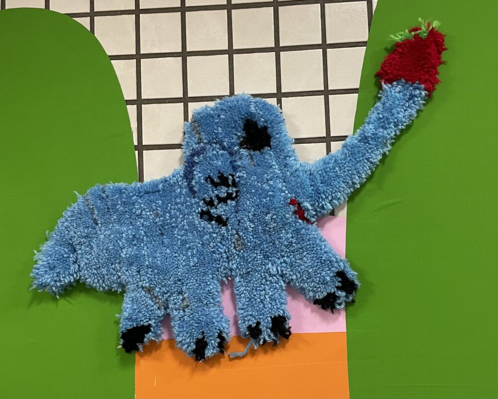 夢中になって絵を描く子どもたちの姿は、タイトルの「HAVE A NICE DAY」をそのまま体現しているようで、とても楽しく充実した時間でした。そんな素敵なひとときから生まれた作品を集め、一枚の絵として再構成し、タフティングという技法でラグにしました。