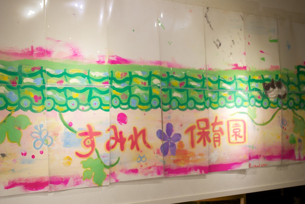 塩入さんの今回の個展は、保育園バスの原画&写真展。縁あって、新潟にある保育園のバスに絵を描くことになりました。