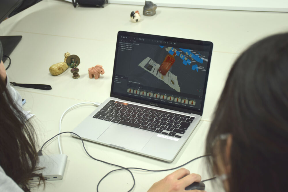 次に、様々な方向から写真をとる様子です。写真の角度や枚数によってデータの質や重さが変化するので、学生の皆さんは工夫を凝らしながら撮影に臨んでいます。