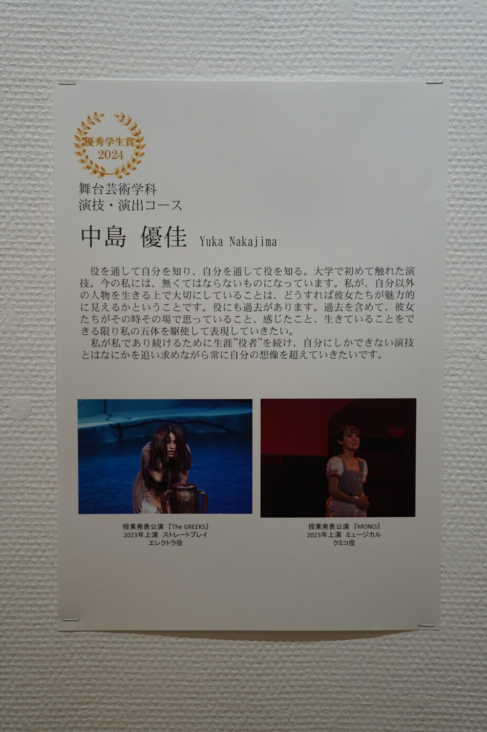 それでは、受賞された舞台芸術学科4名の皆さんをご紹介します!