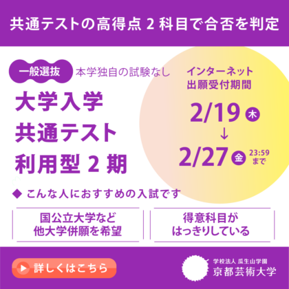 今回は、京都芸術大学の入学試験のひとつ「大学入学共通テスト利用型」について解説します。