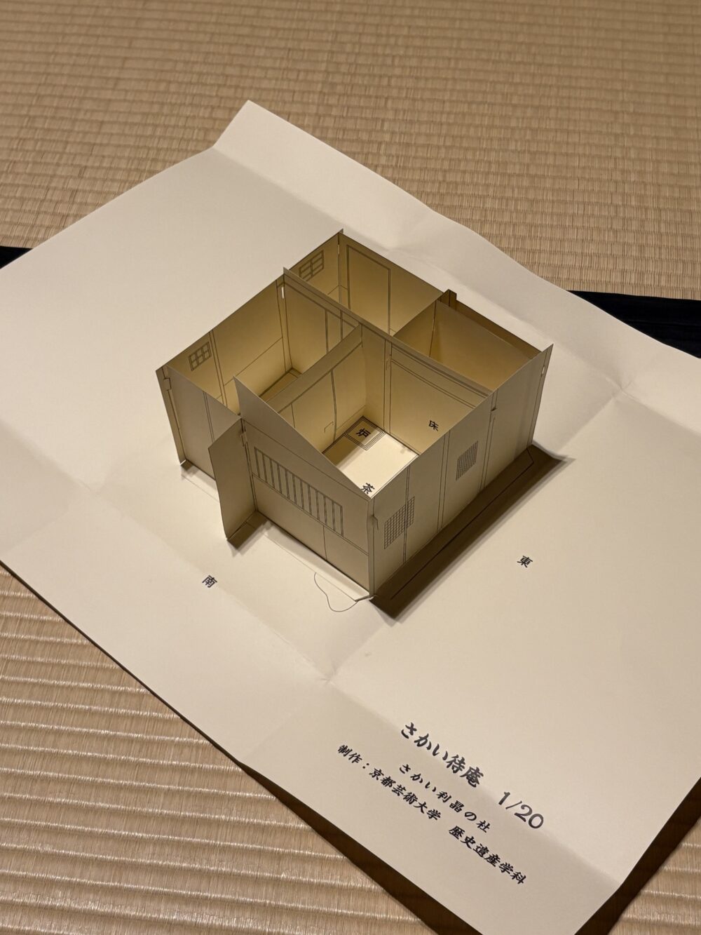 さかい待庵の起こし絵図は、4回生の吉近萌々果さん、宮本優輝子さんに手伝ってもらってサンプル制作を進めました。この作業には、4回生二人が卒論と就職活動の合間をぬって完成させてくれました。
