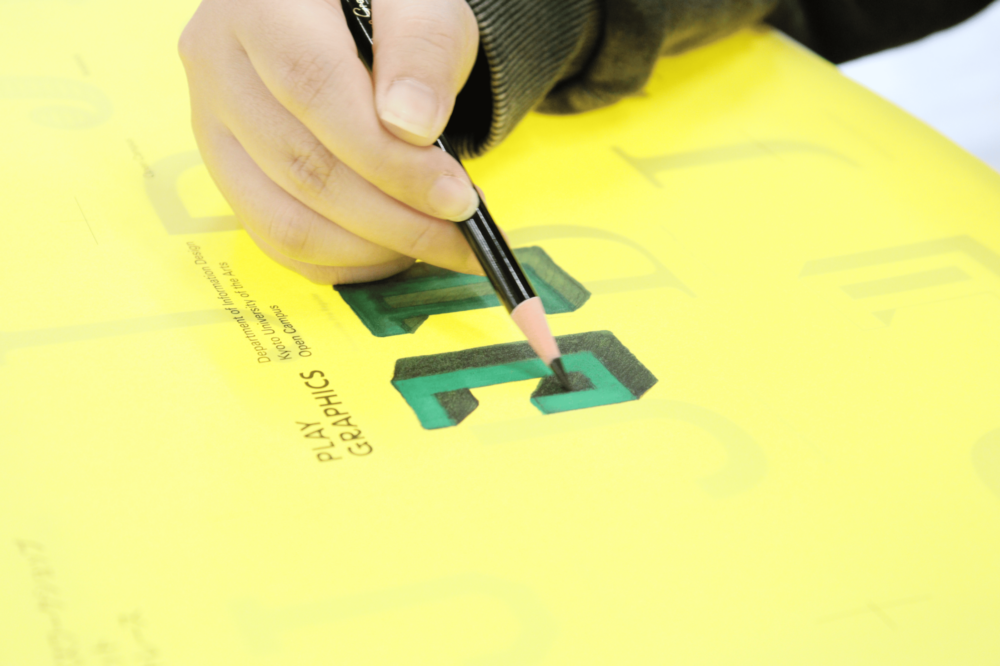 情デ学生はフォントが大好き!太さに加えて、縦長・横長へのプロポーション変更にも対応した、画期的なバリアブルフォント「百千鳥」が新登場。百千鳥だけで作られた様々な表情の看板の前で、MAXポーズ!