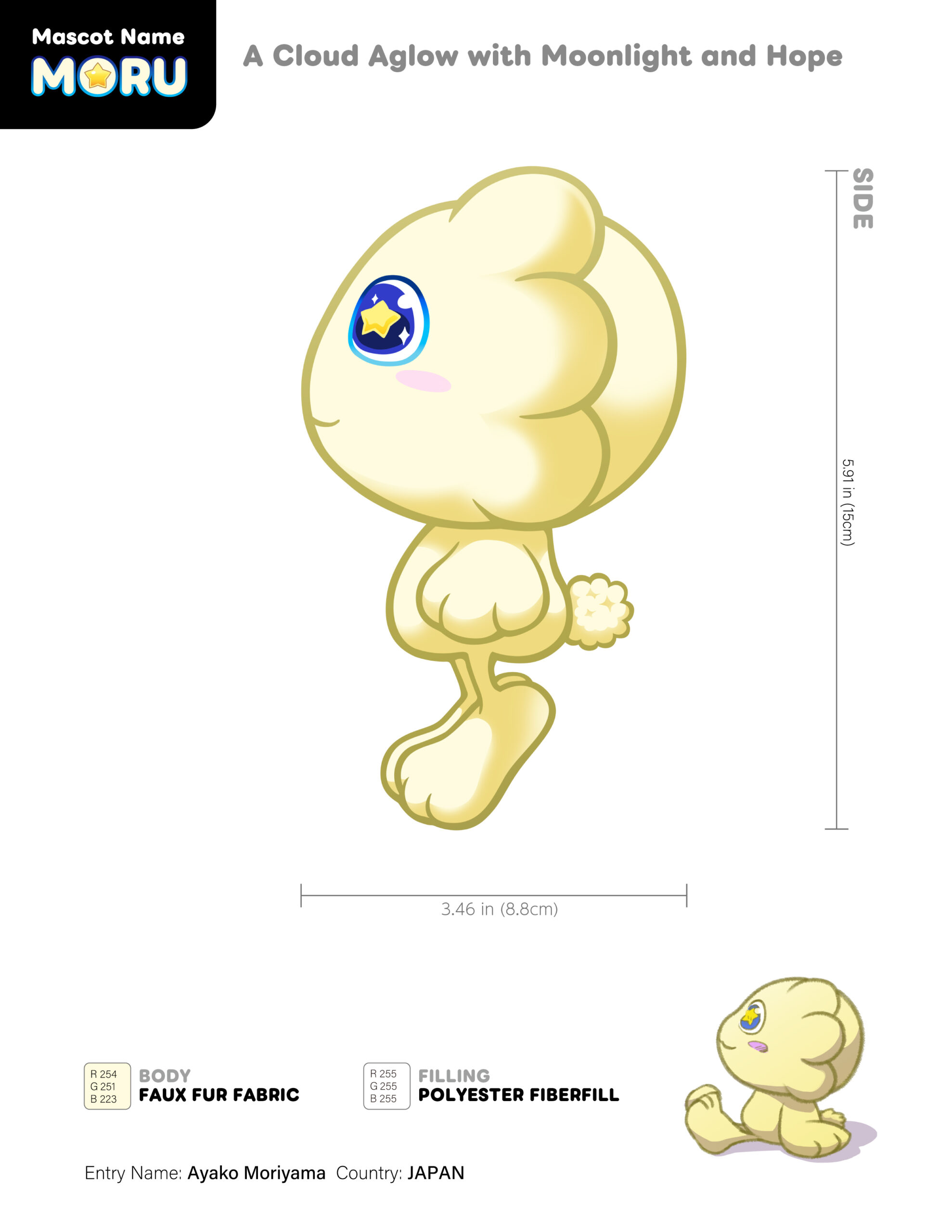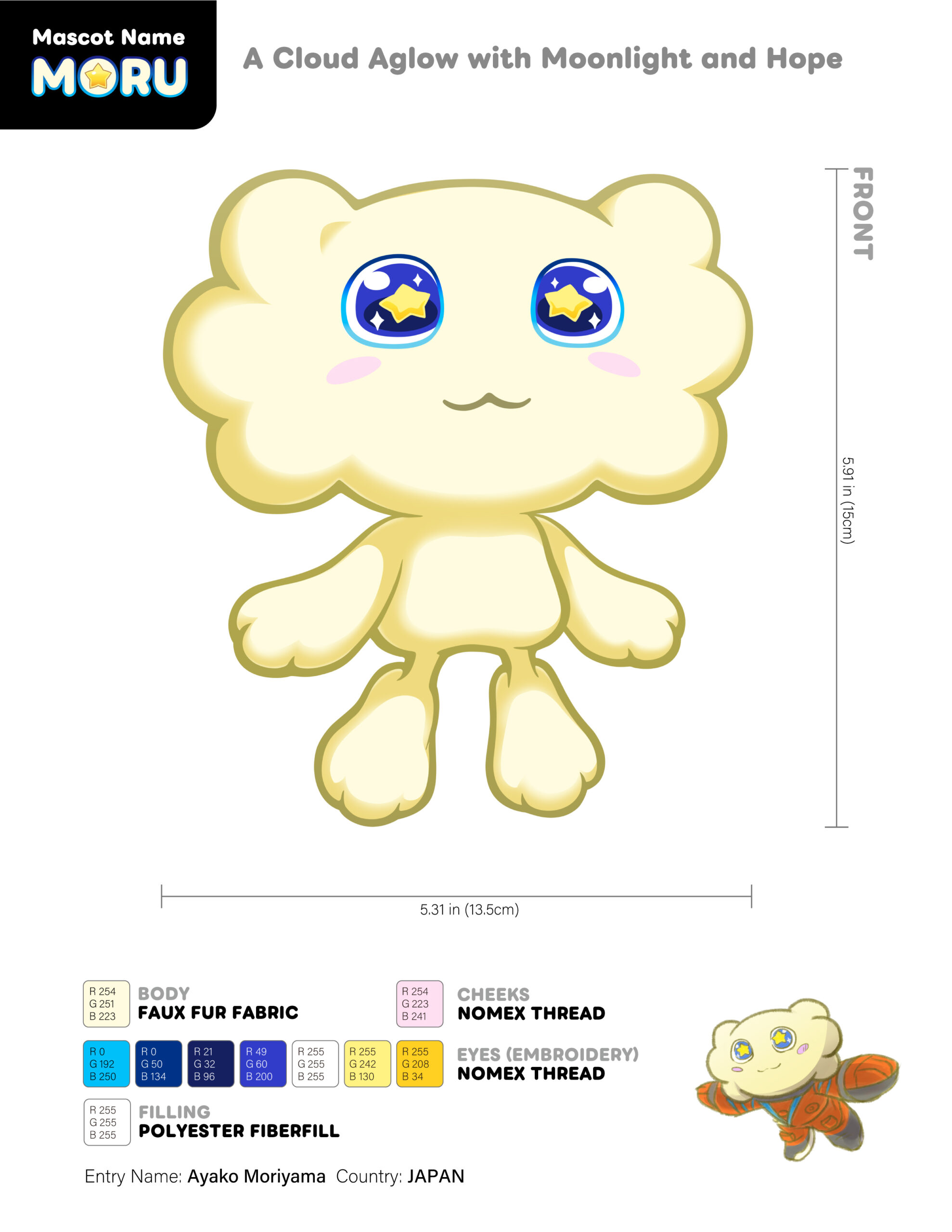 さて、マスコットデザインMORUのモチーフを「雲の妖精」とした理由なのですが・・・どの国、団体、宗教、文化にも固定化されず依存もせず、形を変えて浮かぶ自由気ままな雲。宇宙に最も近い地球の自然物が、人と手をとり大気圏を飛び出して宇宙へと飛び立つ–この常識外な限界を超えてゆく奇跡こそ、月を目指し、その先の火星へと繋げるアルテミス計画のミッションの核を体現すると考えました。