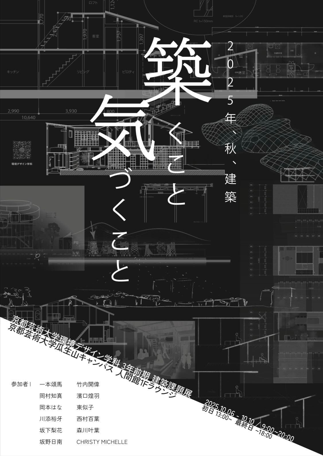 京都芸術大学のメイン建物人間館の入り口入って左手にて展示しておりますので、お時間がございましたら、ぜひ会場に足を運んでいただき、学生たちの成果をご覧ください!✨