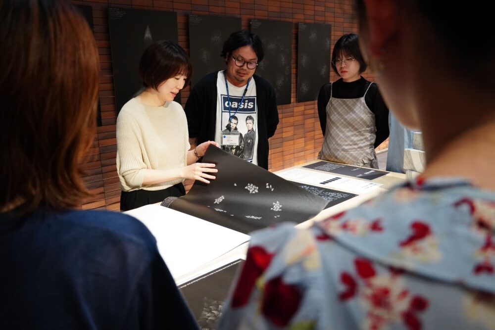 プリンティングディレクターの高橋さんが、それぞれの作品に込められた意図や印刷の工夫を丁寧に解説してくださいました。