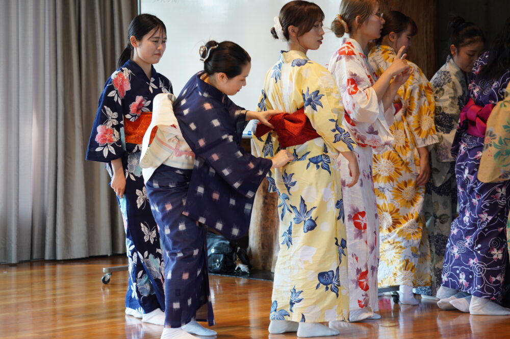こちらの写真は、発表の前に安寿子先生に着付けを整えていただいているところです。