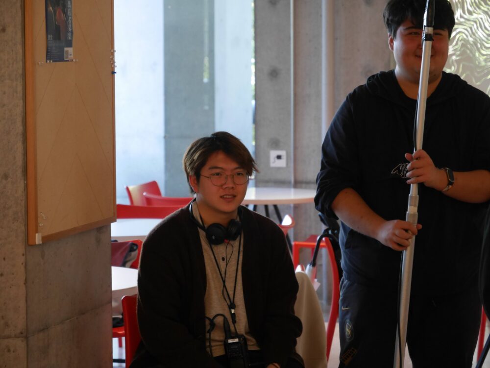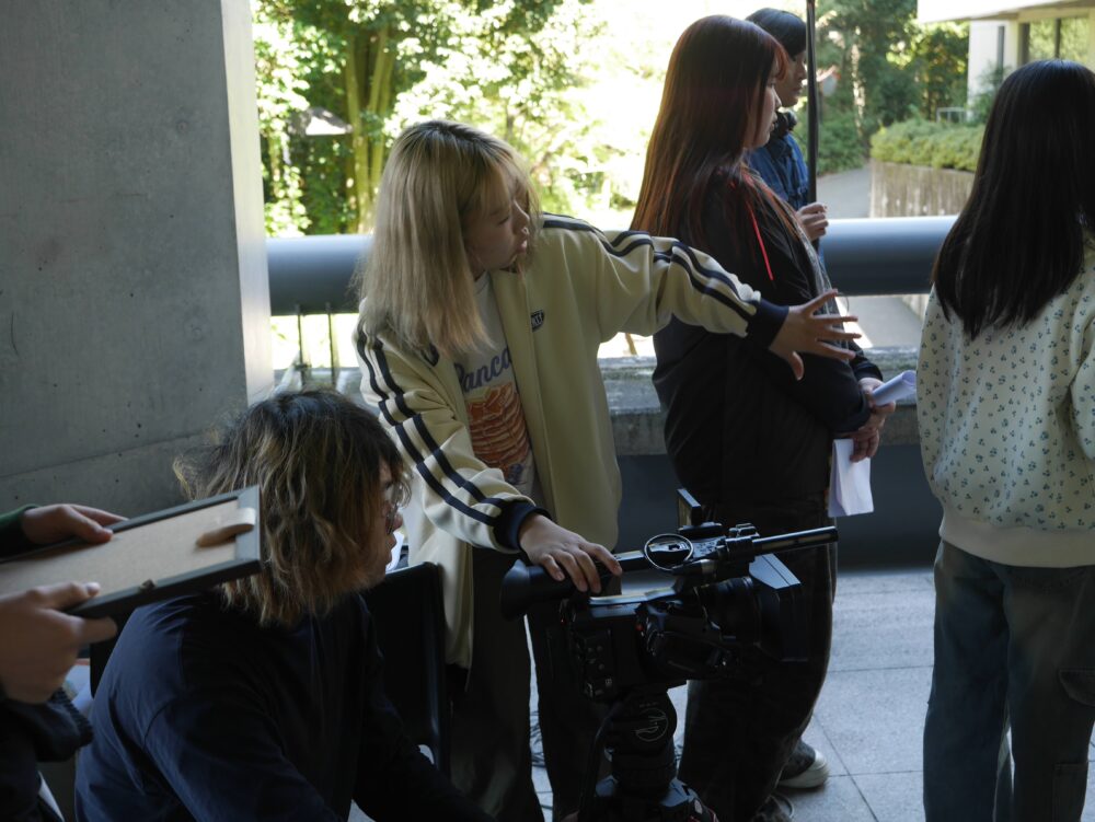 学生たちは各領域に分かれて映画になるドラマを撮影します。