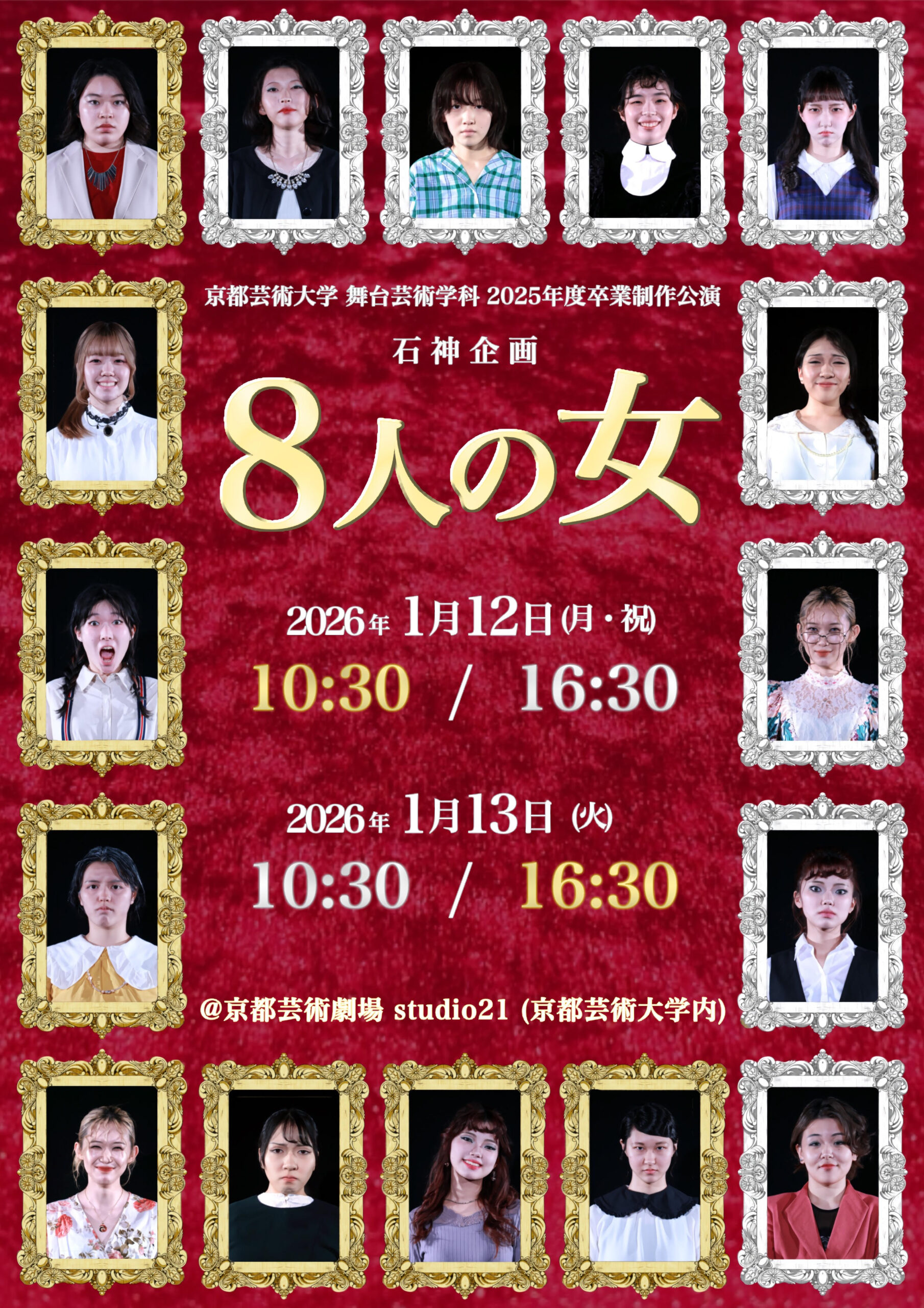 【公演情報】卒業制作公演 石神企画 『8人の女』1/12(月)・1/13(火)
