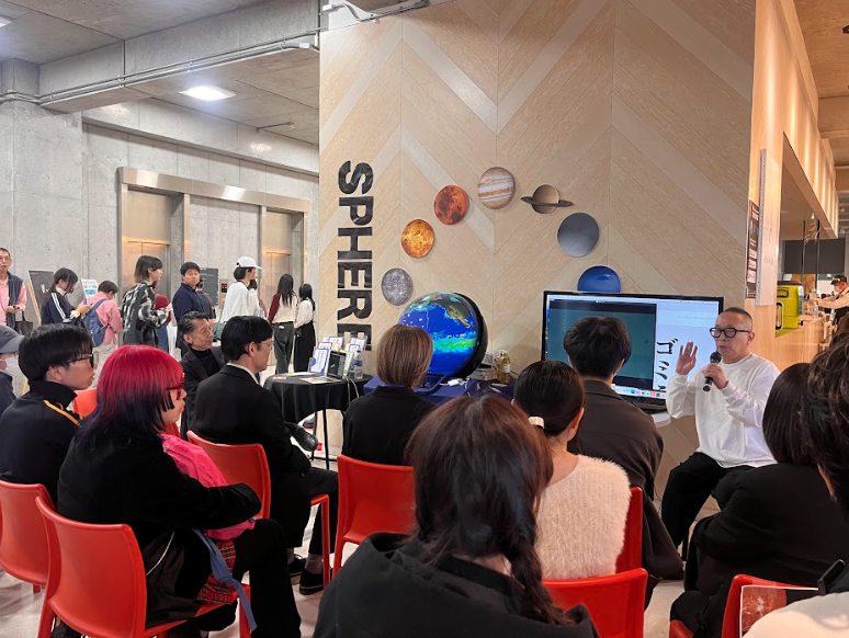 なんと、今日はカフェスペースで佐藤卓学長がトークショーをされていました…!