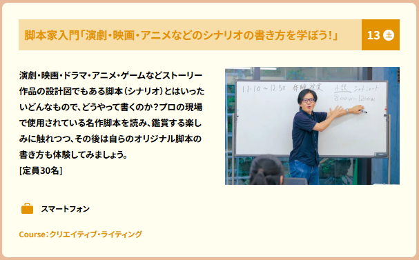 文芸表現学科は、12/13(土)に「脚本家入門『演劇・映画・アニメなどのシナリオの書き方を学ぼう!』」、12/14(日)に「小説を書く!100分で超初心者でも小説が書けるようになる!」の講座をそれぞれ開催します!!