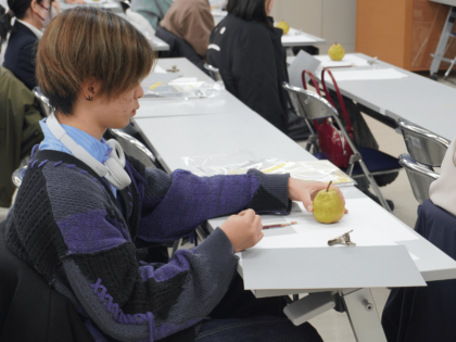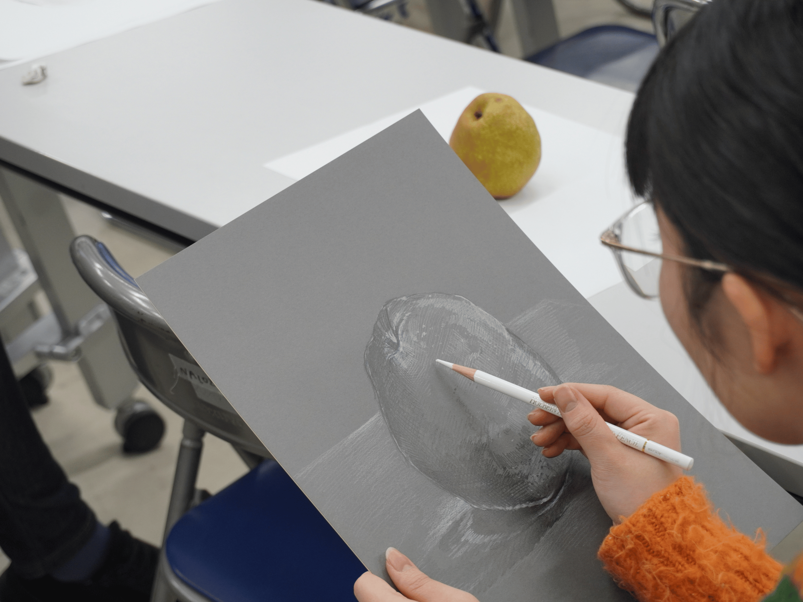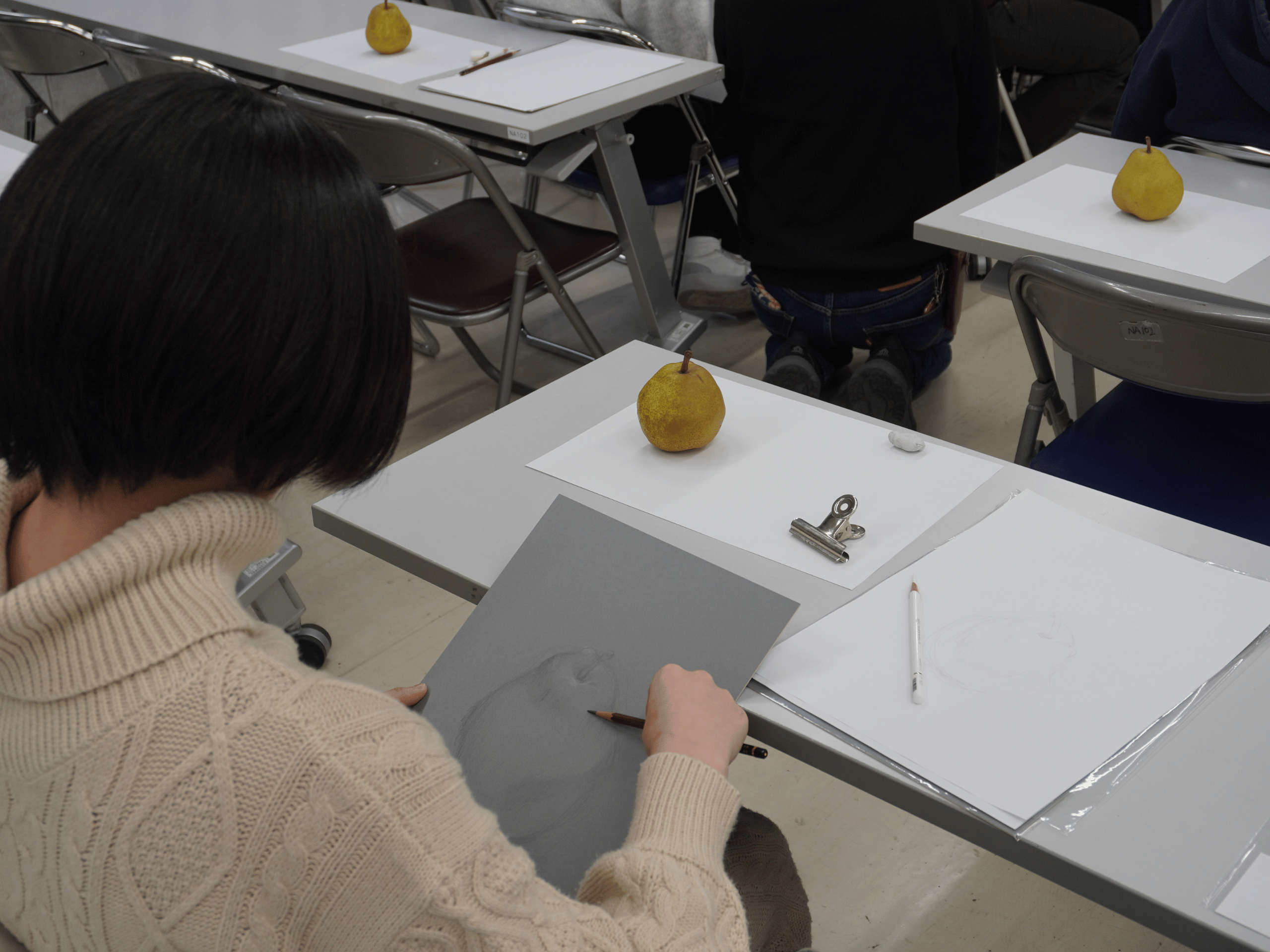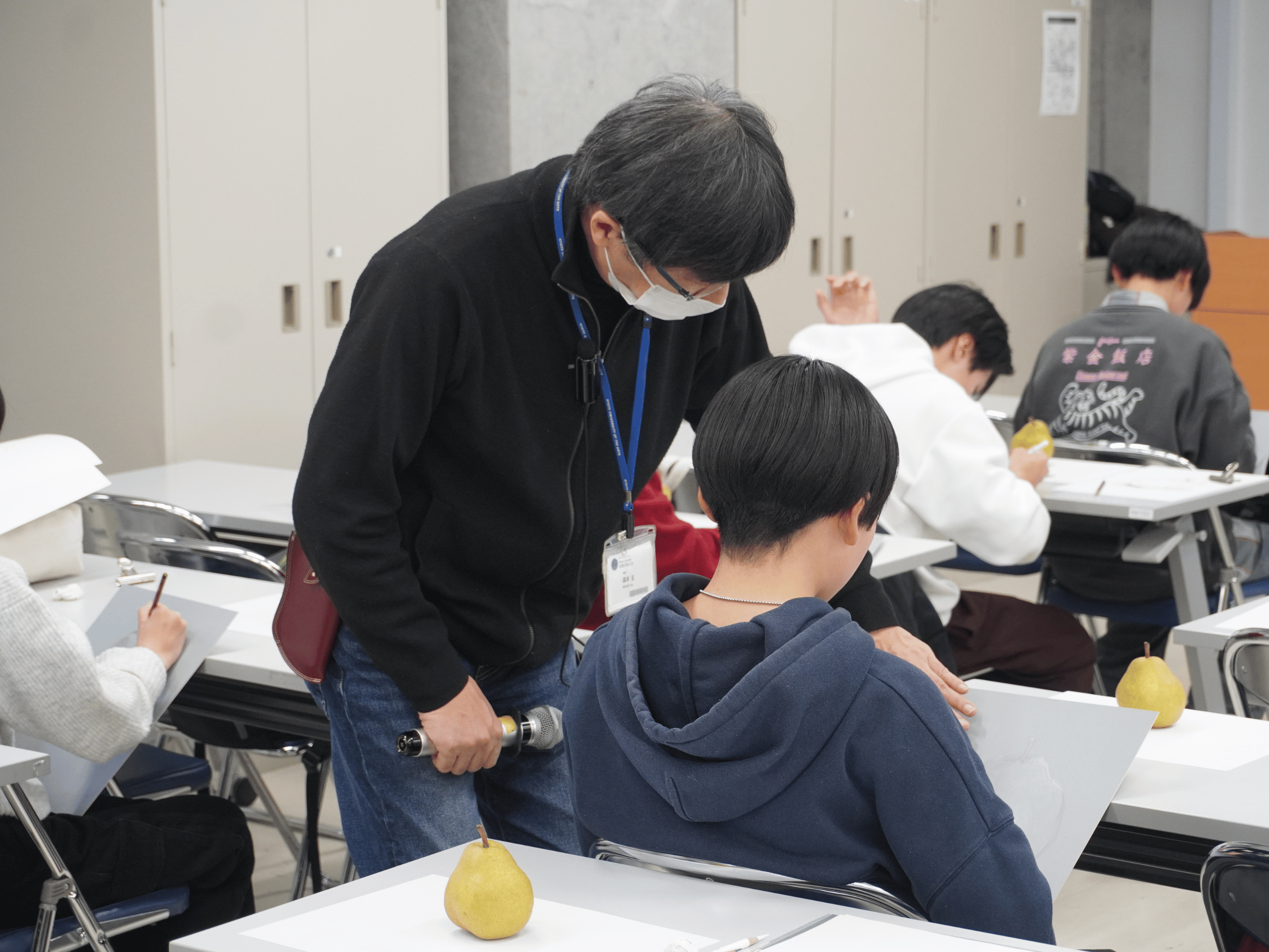 短い時間ではありましたが、このデッサン体験がみなさんの「観察すること・表現すること」の楽しさを広げるきっかけになれば嬉しいです。次年度のオープンキャンパスでも、デッサンの見方を鍛える回がありますので、継続してご参加ください◎