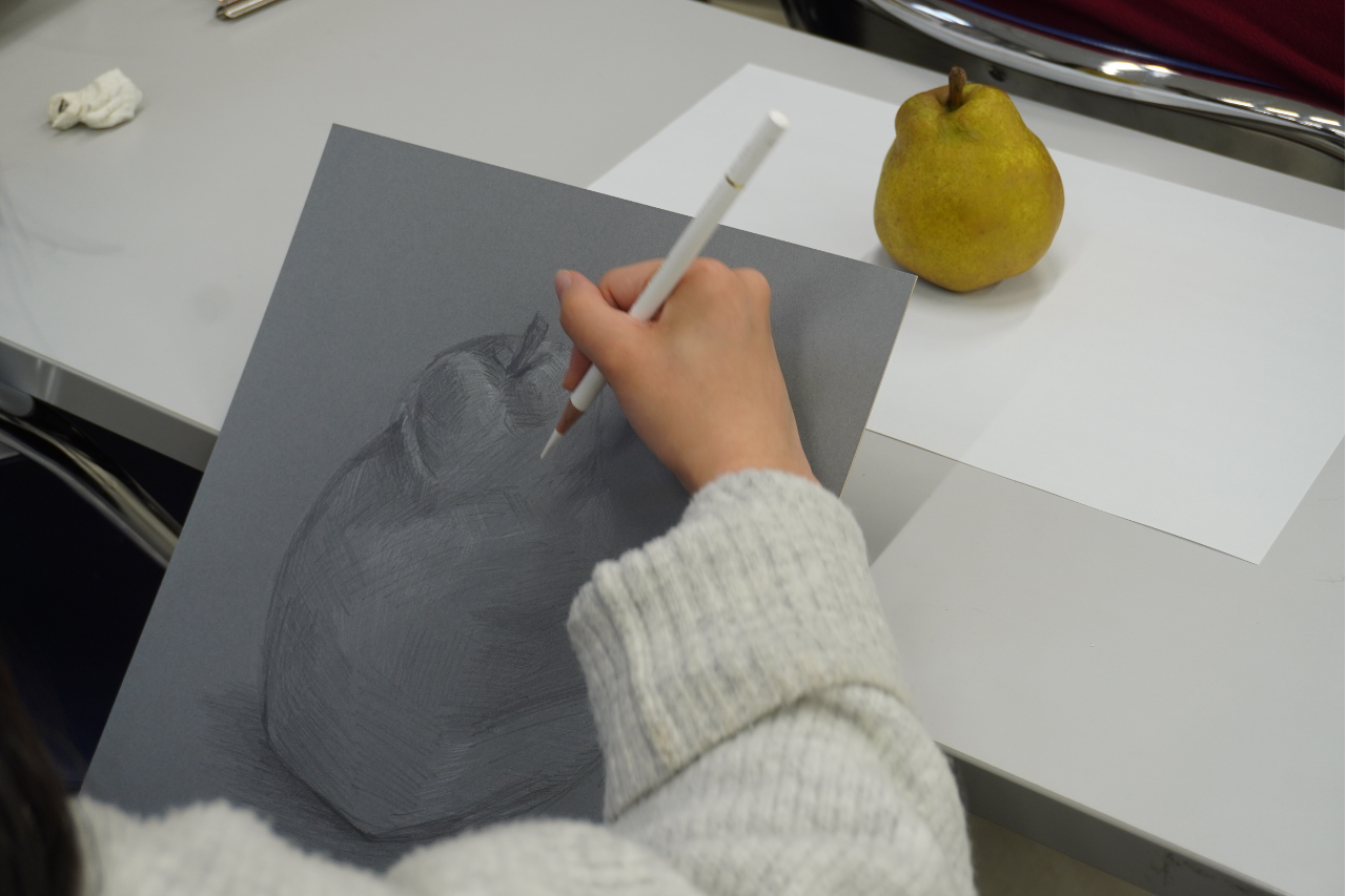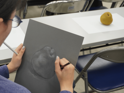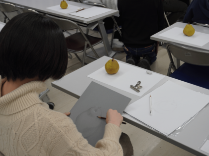 油画コースでは、「光でかたちをつくる ー暗色の紙に白い描画材で描こう!ー」を開催しました。