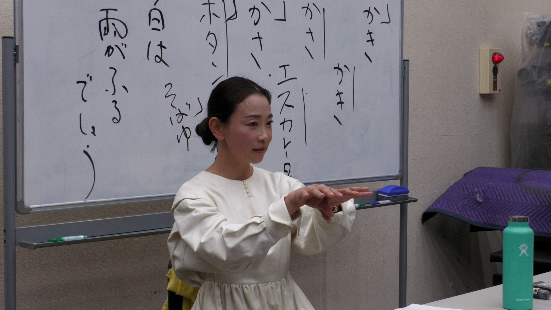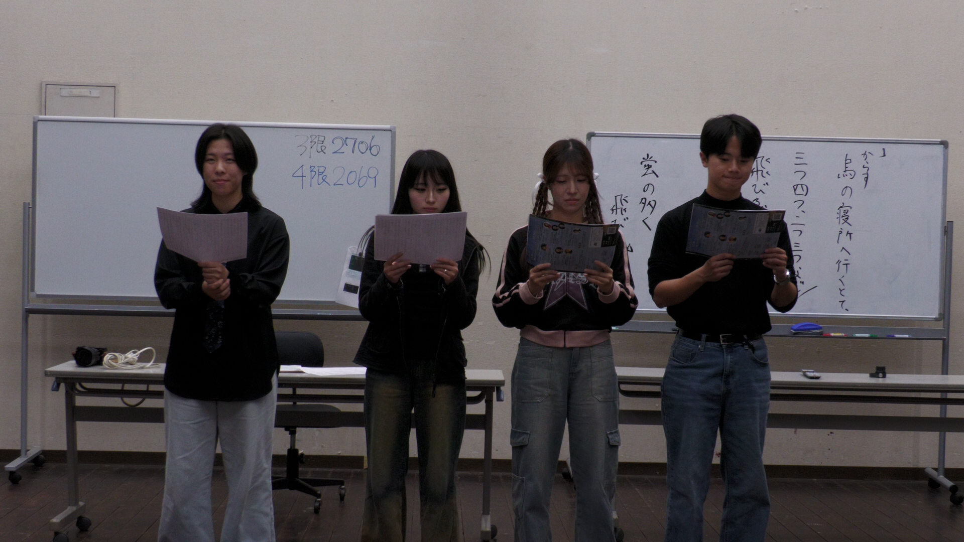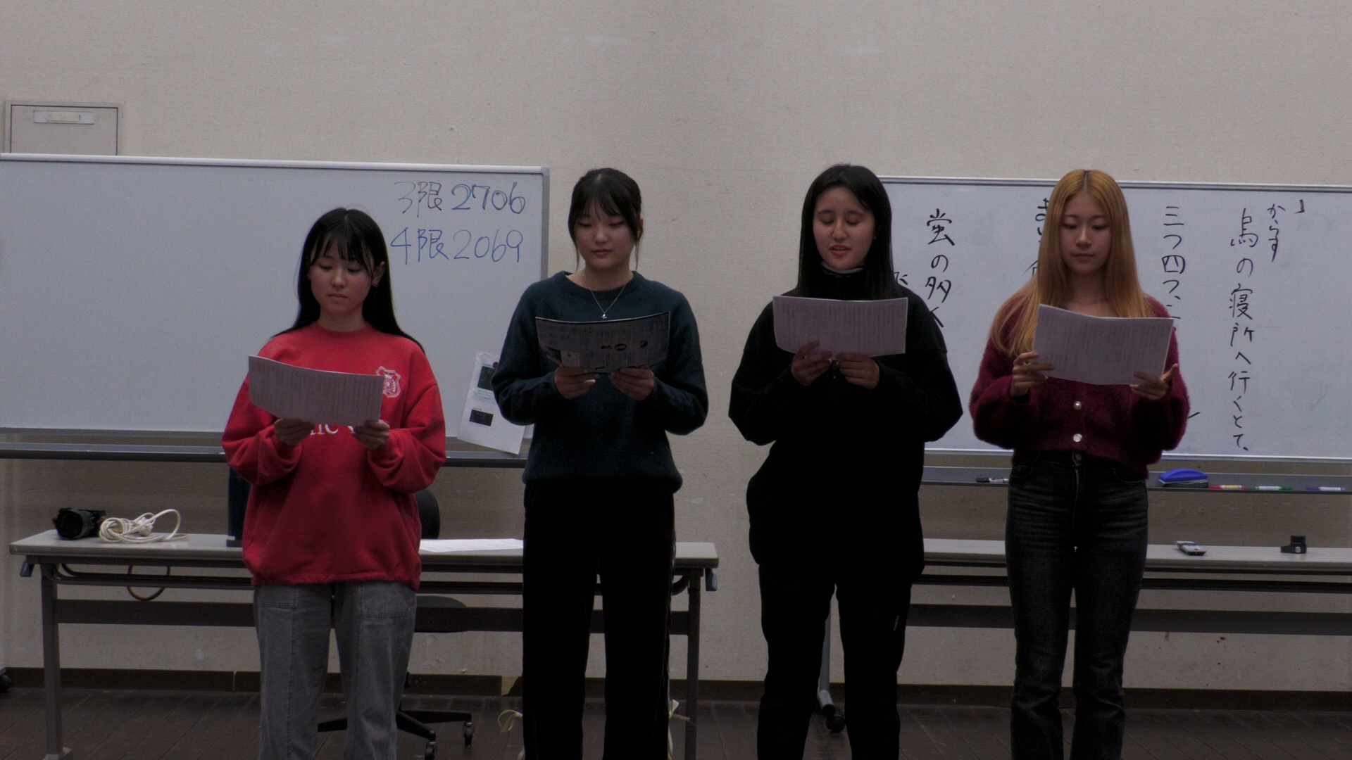初日の11/27は、「朗読」。元フジテレビのアナウンサー・松尾翠さんを招聘し、発話やイントネーションから始まって朗読の基礎を学んでいきます。
