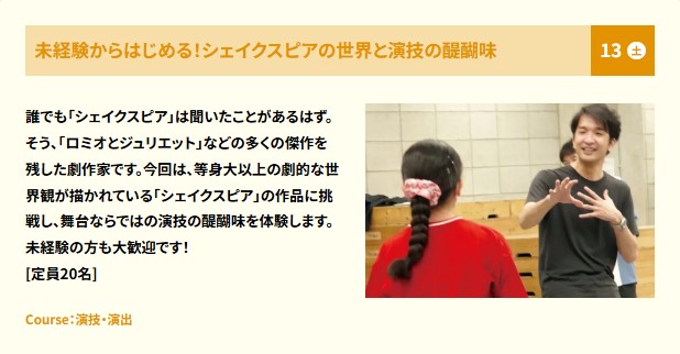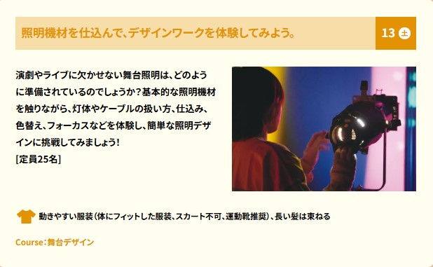 舞台芸術学科では、演技・演出コース、舞台デザインコースそれぞれの体験授業をご用意しております。