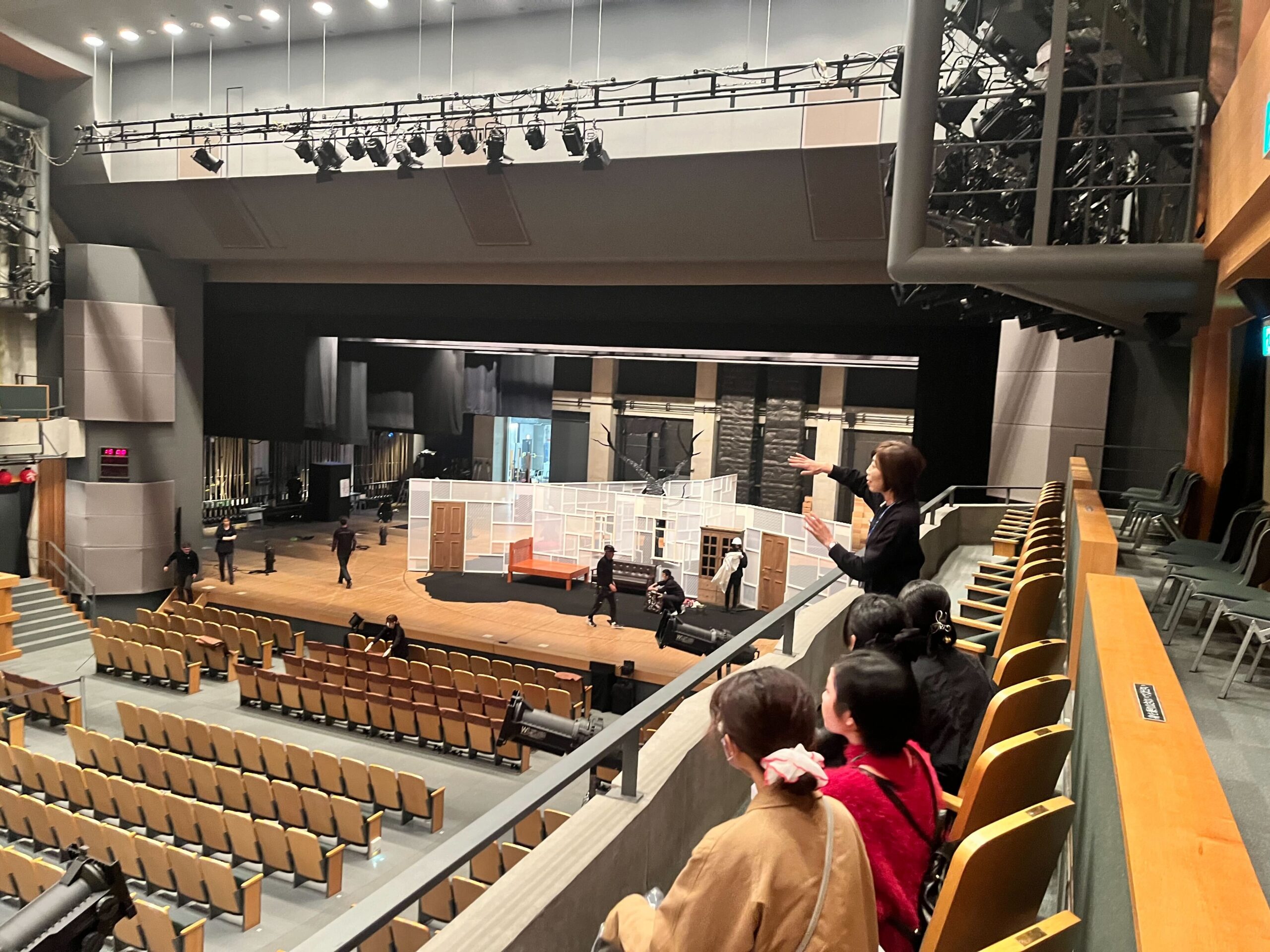 劇場の2階席にお座りいただき、普段はなかなか目にすることのない、終演後の舞台の様子をご見学いただきました。