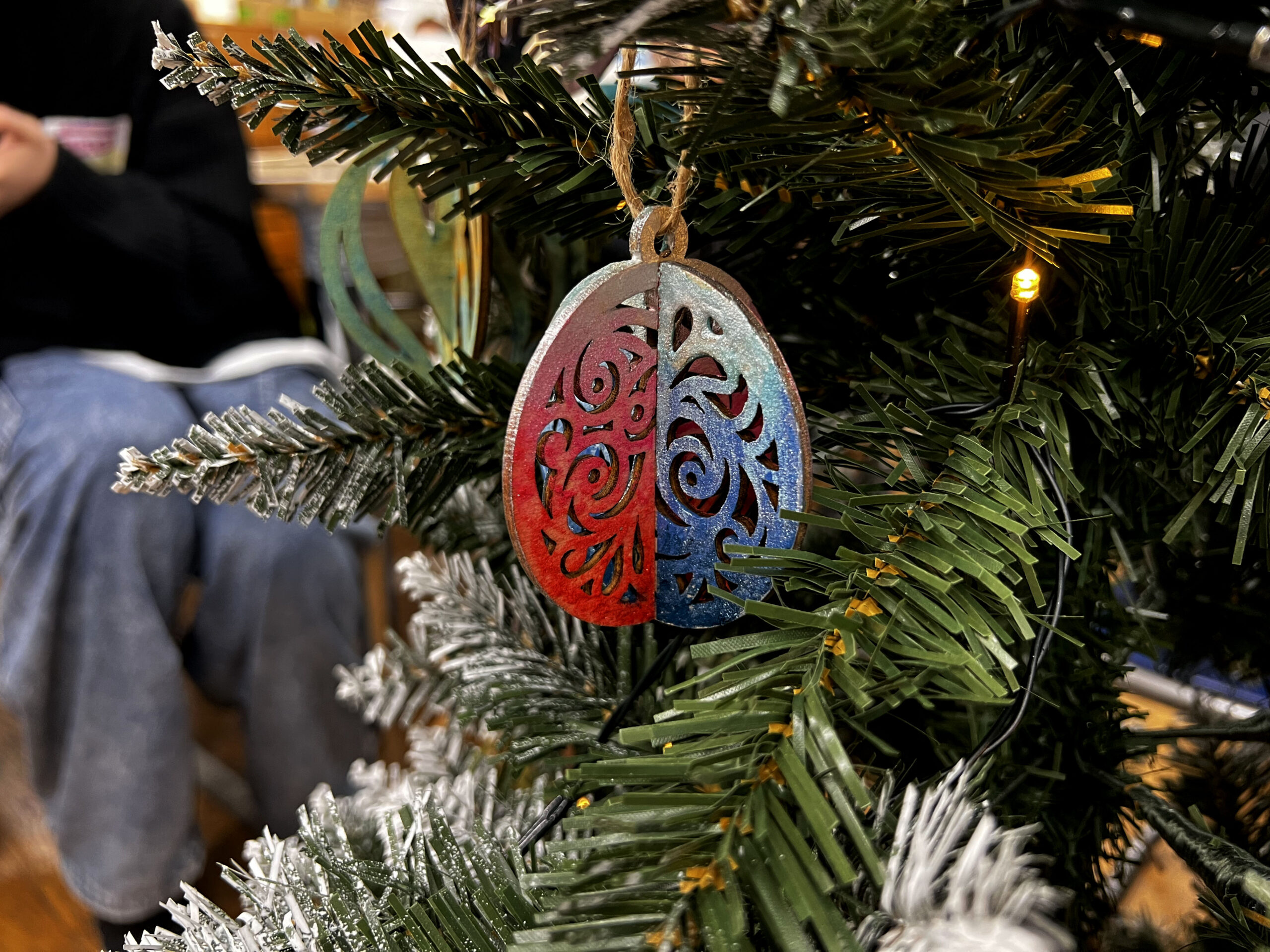 完成したオーナメントは、実際にクリスマスツリーに飾って記念撮影も行いましたよ🎄